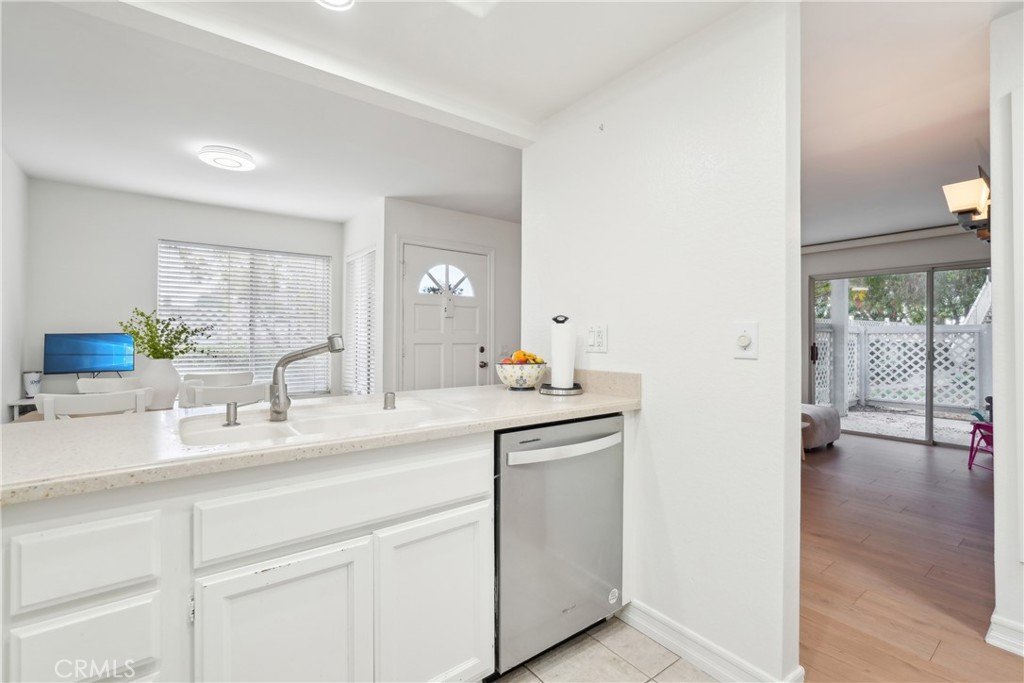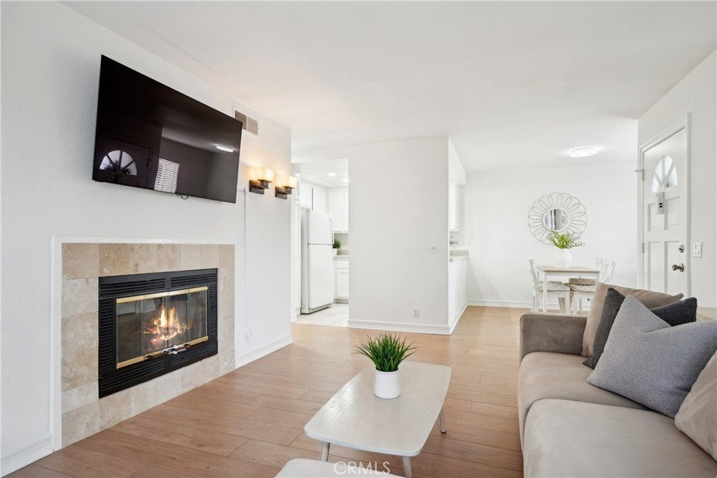 FHA Approved! Welcome to this beautifully updated lower-level 2 bedroom, 2 bathroom condo offering comfort, style, and everyday convenience in a desirable community. This move-in ready home welcomes you with a light filled open floor plan, wood-style flooring, and a spacious living room anchored by a cozy gas fireplace. Large sliding glass doors open to a private patio, creating the perfect space to enjoy morning coffee, relax in the evening, or entertain guests while extending the living area outdoors. The open layout flows seamlessly into the dining area and well appointed kitchen, making the home feel both spacious and connected for daily living. The kitchen features crisp white cabinetry, neutral countertops, stainless steel appliances including a dishwasher and built in microwave, recessed lighting, and a convenient breakfast bar that opens to the dining nook for casual dining or entertaining. The primary suite offers a peaceful retreat with generous closet space and a private en suite bathroom designed with clean modern finishes and an updated vanity. The second bedroom provides flexible living options and can easily function as a guest room, home office, or additional sleeping space depending on your needs. Both bathrooms have been tastefully updated to provide a fresh, modern feel. An important upgrade to this home includes newly installed plumbing, adding long term value and peace of mind for the next owner. Additional features include: Laundry room with washer, dryer hook-ups, central air conditioning and heating for year round comfort, two covered carport parking spaces, and access to well maintained community amenities surrounded by mature landscaping. The community is FHA approved which opens the door to more financing options for buyers. Conveniently located near shopping centers, restaurants, parks, and major freeways, this home offers the ideal blend of comfort, accessibility, and low maintenance living. Whether you are a first time buyer, looking to downsize, or searching for a smart real estate investment, this turnkey condo is an opportunity not to be missed.