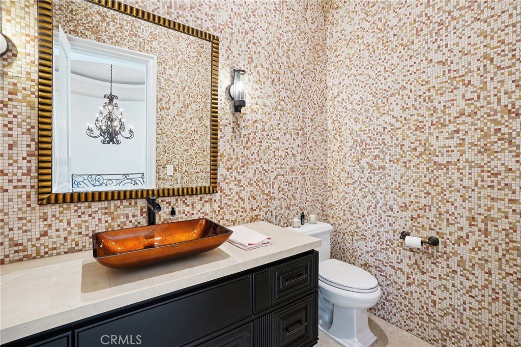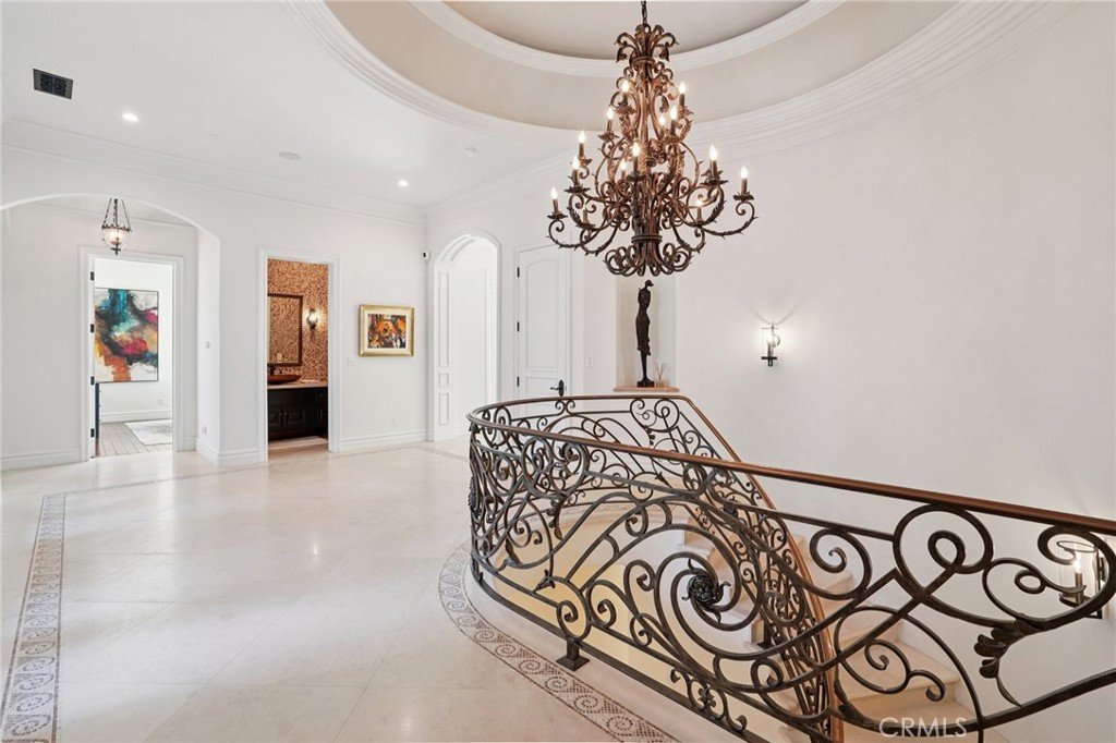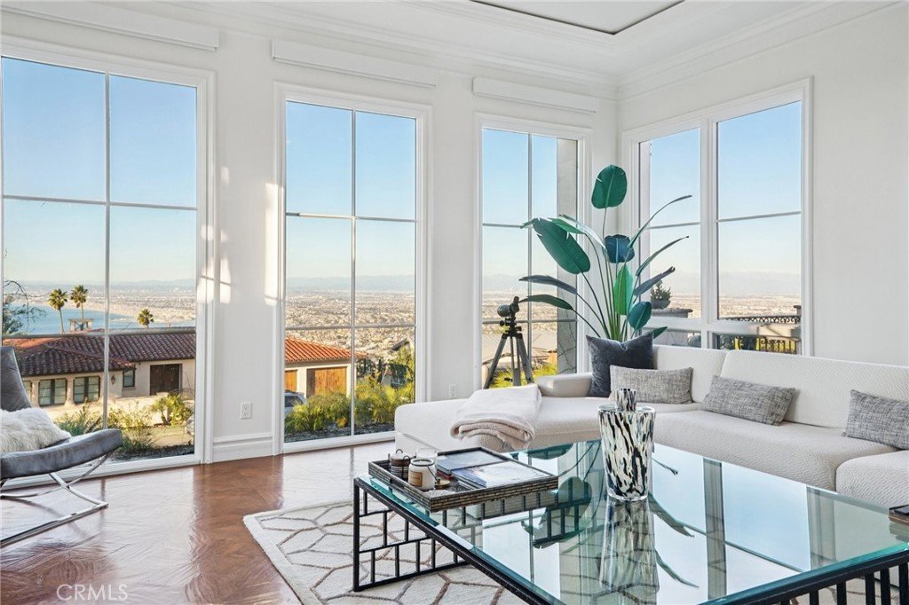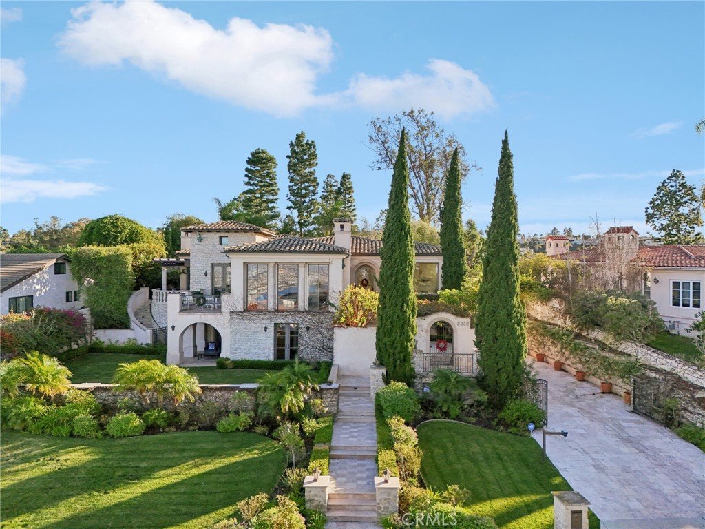 Old-world Tuscan charm meets elevated coastal living in a home that knows how to make an entrance—and then casually steals the show. With nearly 6,500 sq ft of light-filled living, this Palos Verdes Estates beauty delivers grand scale without a hint of stiffness. Think impressive, inviting, and surprisingly easy to live in. The main level includes a chef’s kitchen where weeknight dinners turn into lingering conversations—and full-blown celebrations feel effortless. Quartzite countertops, an oversized island, dual sinks, triple Wolf ovens, and multiple Sub-Zero refrigerators make hosting feel natural, while the fully equipped butler’s pantry (yes, it has its own Wolf oven and wine fridge) keeps things running smoothly behind the scenes. Custom barn doors add a touch of charm, and statement chandeliers and tray ceilings bring just the right amount of drama. Walls of glass frame sweeping ocean and city coastal views which flood the home with sunshine, while architectural moments—like the show-stopping spiral staircase—deliver wow factor in all the right places. Five generously sized en-suite bedrooms (four of them conveniently located on the main level) ensure comfort and privacy for everyone, and the primary suite feels like a private spa escape you’ll look forward to retreating to every night. A rich, wood-clad English pub brings a cozy old-soul vibe—perfect for laid-back evenings and well-earned nightcaps. Plus, the main floor offers easy access to nearly every corner of the home plus the backyard, making indoor-outdoor living a breeze. Step outside and the vibe shifts to full-on resort mode. Spanning nearly 19,000 sq ft, the grounds feature a pool and spa, outdoor kitchen with built-in BBQ, fire pit, multiple patios for gathering, and grassy spaces perfect for play, lounging, or sunset toasts. When it’s time to switch gears, the elevator makes heading downstairs effortless, whether you’re settling in for movie night in the private theater, hosting guests in the guest bedroom, or breaking a sweat in the flexible bonus room—currently living its best life as a gym. The expansive front lawn creates a grand arrival, but it’s the sweeping coastline views and iconic Queen’s Necklace from both levels that really steal the spotlight—especially when the lights start to sparkle. Designed for unforgettable moments, easy entertaining, and everyday living that feels a little more magical—this is one home that knows how to have a good time (and look very good doing it).