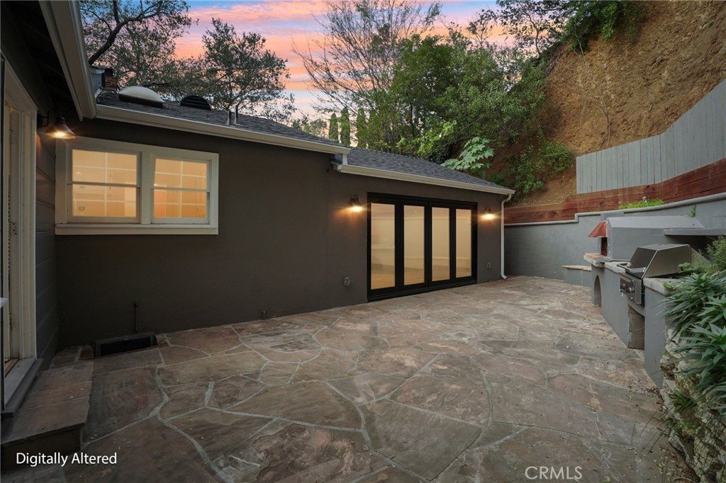 Tucked into the heart of Beachwood Canyon, this charming hillside residence blends classic character with thoughtful updates and exceptional indoor-outdoor living. Warm wood floors, abundant natural light, and a welcoming fireplace anchor the living spaces, while the kitchen features butcher block countertops, a professional-grade range, and timeless cabinetry. French doors and multiple outdoor access points lead to expansive stone patios, ideal for entertaining, dining al fresco, or enjoying the serene canyon setting, complete with a built-in outdoor kitchen and pizza oven. A detached garage with exposed beam ceiling offers flexibility for parking, storage, or creative use. Surrounded by mature trees and greenery, yet just minutes from Franklin Village, Griffith Park hiking trails, Hollywood, Los Feliz dining, and easy freeway access, this home offers a rare balance of privacy, charm, and convenience in one of Los Angeles’ most sought-after neighborhoods.