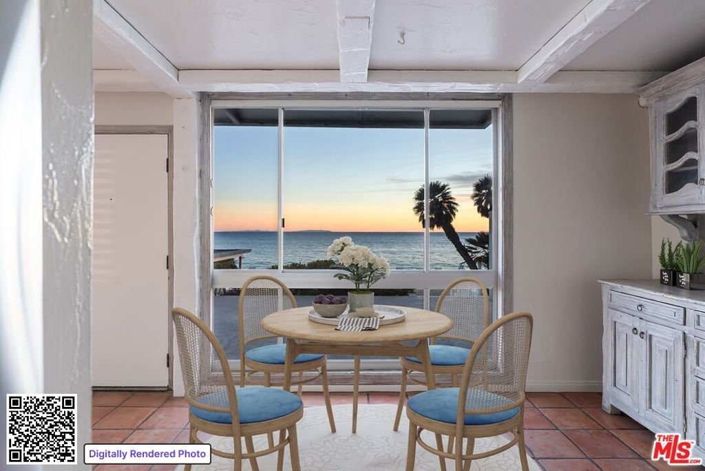 Set on Malibu's iconic Carbon Beach, this rare first-floor corner residence at the Malibu Outrigger captures the essence of refined coastal living. Steps from the private sandy beach and the Outrigger's oceanfront pool and spa, this sophisticated 2-bedroom, 2-bath retreat offers sweeping whitewater vistas from sunrise to the Queen's Necklace glowing at night. Inside, an updated, flexible floor plan blends relaxed elegance with warm, timeless finishes. The open kitchen and spacious dining area flow seamlessly into a living room anchored by a wood-burning fireplace, with distressed wood accents and artisan tile adding texture and character. Walls of glass extend the living space outward to an expansive, intimate patio perfect for morning coffee, sunset entertaining, or dining to the sound of the surf. The premier corner location enhances natural light and coastal breezes, creating an atmosphere of serenity throughout. From this coveted beachfront setting, stroll along the sand to Nobu, Soho House, the Malibu Pier, and the area's most celebrated restaurants. Offering private beach access, resort-style amenities, and an unbeatable Carbon Beach address, this residence presents an extraordinary opportunity to enjoy Malibu living at its most iconic. Property has been virtually staged.