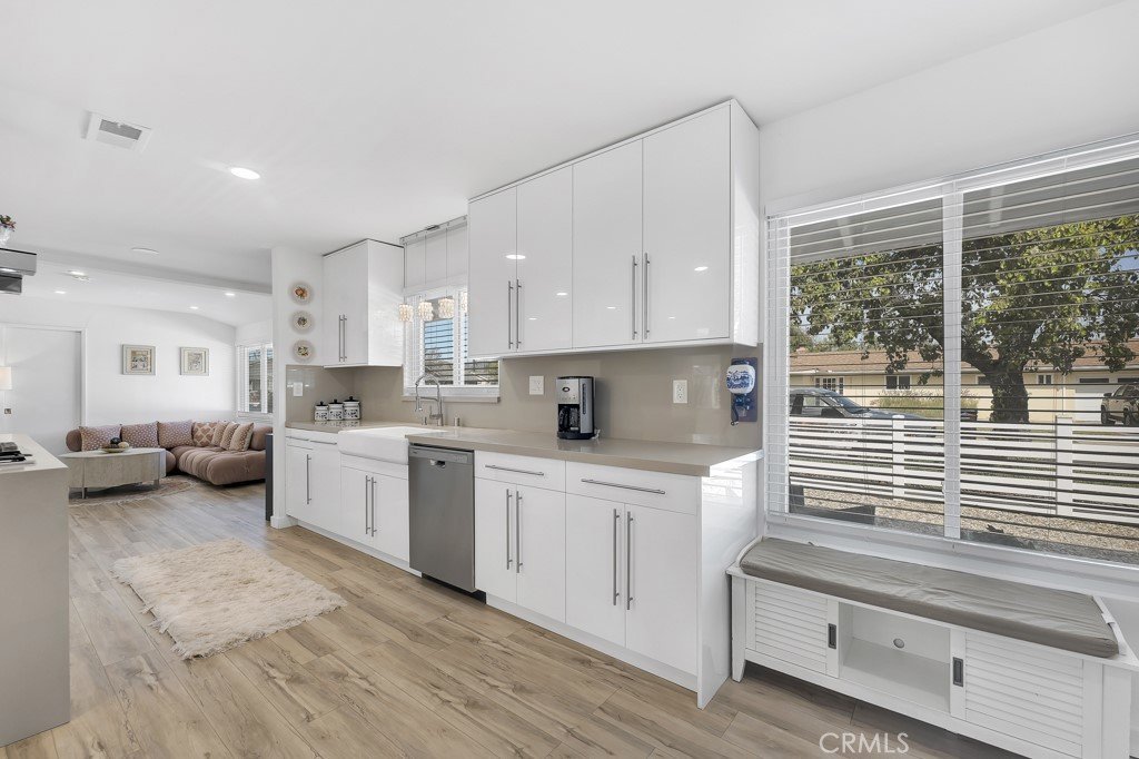 Welcome to this beautifully updated single-story home on a 7,499 sq ft corner lot in a quiet West Hills neighborhood. The interior features stylish laminate flooring throughout, recessed lighting, smooth ceilings, and abundant natural light. The updated kitchen showcases a large center island with waterfall-style countertops, modern cabinetry, a built-in gas cooktop with stainless steel hood, and stainless steel appliances. The open-concept layout flows seamlessly into the dining and living areas, ideal for everyday living and entertaining. The living area is highlighted by a striking modern electric fireplace with a custom accent wall, creating a warm and inviting focal point. The primary suite offers a comfortable and spacious setting with an en-suite bathroom featuring modern finishes and a walk-in shower. Additional bedrooms are well-sized and versatile, with updated secondary bathrooms. The private backyard features mature trees, low-maintenance landscaping, and a covered patio perfect for year-round enjoyment. The property includes a two-car garage, a covered front parking area equipped with an electric vehicle charger, and a gated rear parking area with an electric opener, offering excellent flexibility for RV or additional secured parking. Additionally, the property has an ADU permit approved by the city, providing a valuable opportunity for future expansion or additional living space. Conveniently located near parks, shopping, dining, and major routes, this move-in-ready home offers modern living in an established West Hills setting.
