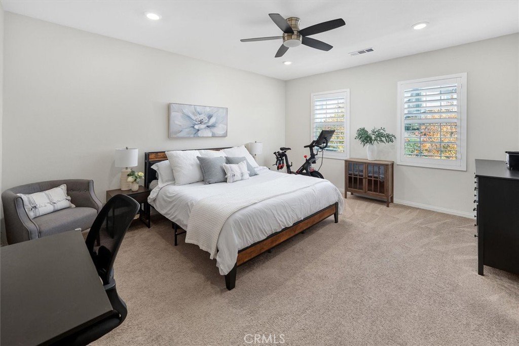3 bedroom plus loft townhome with 2.5 bathrooms, 1490 sq ft, an attached 2 car garage, and an upstairs laundry room in the Concord at River Village community (a WARRANTABLE and VA approved complex with low HOA dues!) Built in 2020, this home features luxury vinyl plank flooring, plantation shutters, energy-efficient solar, a QuietCool whole house fan, tankless water heater, and an EV charging outlet. The first floor has an open concept layout with a large kitchen island, granite countertops, a spacious pantry, stainless steel appliances, dining area, living room, powder room, and direct garage access. The second floor includes the primary suite with dual sinks and a walk-in closet, two additional bedrooms, a full bathroom, a loft, and a dedicated laundry room. This home is located in a quiet section of the community with no front neighbors and a private patio. Community amenities include a resort-style pool, spa, clubhouse, BBQ area, and a tot lot. There is also a convenient neighborhood path that provides access to Central Park. Close proximity to shopping, dining, bike paths, and local conveniences. If you are searching for a newer Saugus home with modern upgrades, efficient systems, and a low-maintenance lifestyle, this is an excellent opportunity. Low HOA & mello roos. Near Emblem Elementary, Arroyo Seco JHS, and Saugus High School!