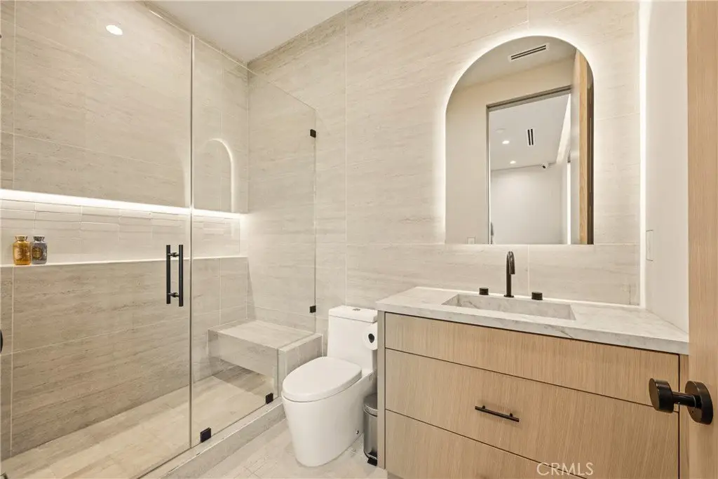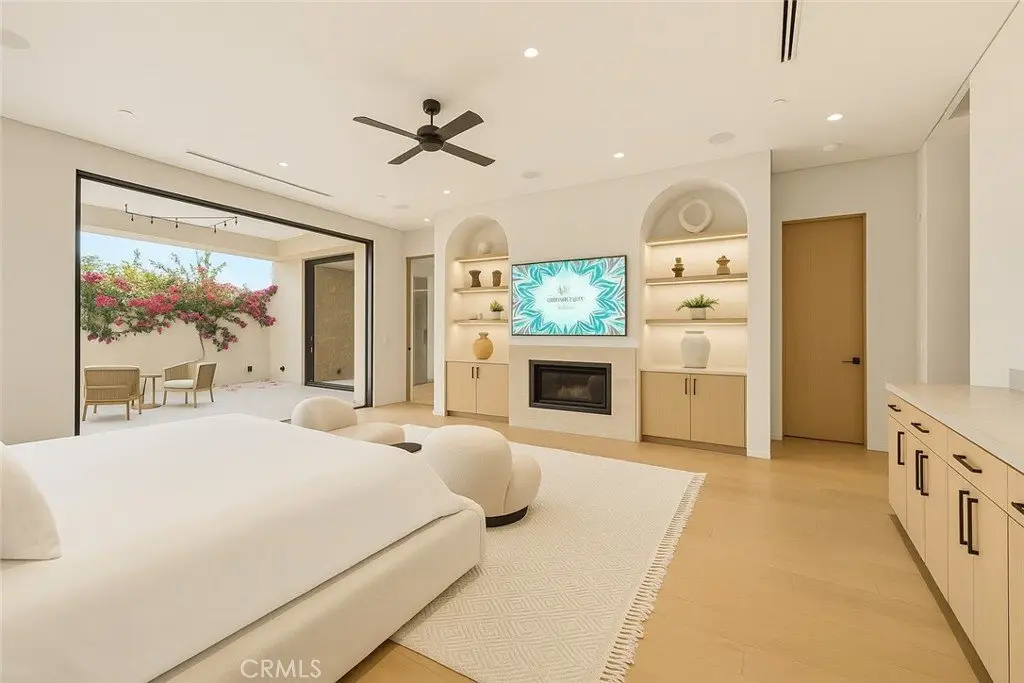 Step inside to discover an interior as breathtaking as the exterior. Plaster walls, designer finishes, and Taj Mahal stone accents blend sophistication with functionality. The home features fully automatic pocket doors that open at the touch of a button, seamlessly connecting indoor and outdoor spaces, along with automated shades throughout for effortless control of light and privacy.