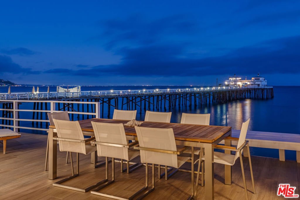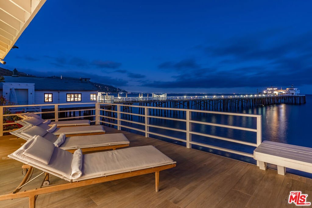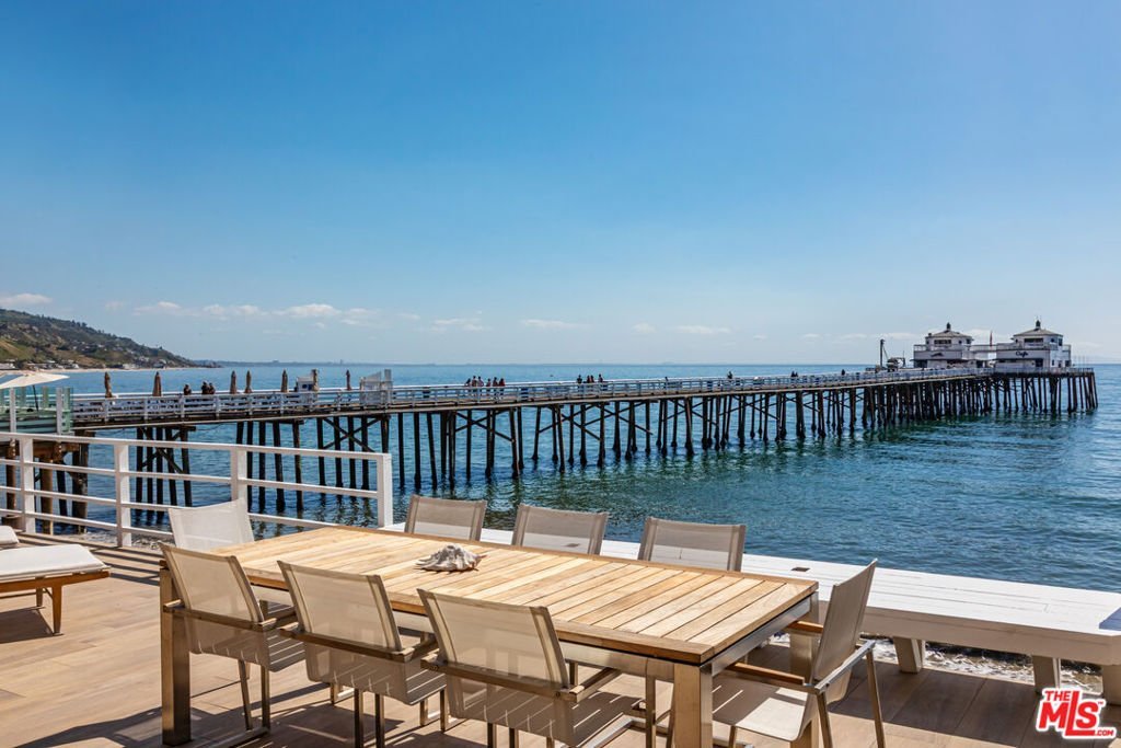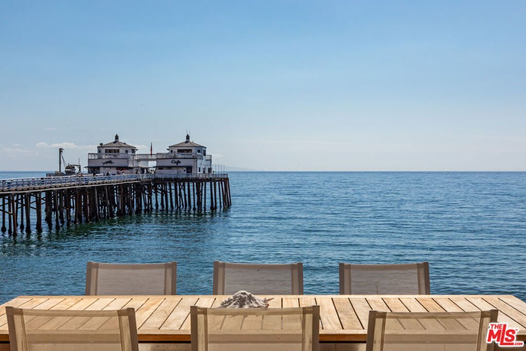 Introducing a rare double-lot beachfront sanctuary with 74 ft of ocean frontage on Malibu's coveted Surfrider Beach. The owner is offering the adjacent 40-foot oceanfront parcel for sale separately, creating a rare trophy oceanfront compound with approximately 114 feet of direct frontage on the legendary Surfrider Beach overlooking the iconic Malibu Pier. Pricing for the parcel available upon request. This single-story coastal retreat blends sweeping panoramic ocean views with architectural elegance. A gated arrival opens to a motor court with ample parking and a private garage. The expansive living/dining pavilion features vaulted ceilings, hardwood floors, a fireplace, and three oversized ocean-facing windows framing the Malibu Pier vistas. Glass doors lead to a wraparound porcelain-tiled oceanfront deck perched above the sand, creating a seamless indoor - outdoor setting ideal for entertaining against the backdrop of Surfrider beach. The gourmet kitchen includes a granite island, skylights, Sub-Zero and Thermador appliances, plus captivating ocean views. The luxurious primary suite offers exceptional privacy with a marble gas fireplace, sliding doors that open to the deck, showcasing the Pier panorama, an oversized walk-in custom closet, and spa-like bath featuring steam shower, soaking tub, and heated floors. Three additional bedrooms (two ensuite) provide stylish accommodations with sunset deck access. Modern upgrades include a whole-house generator, EV charger, Sonos system, and porcelain flooring in the primary suite and deck. With a proven rental history, partial seawall protection, and a prime location in the heart of Malibu near Nobu, Soho House, Malibu Farm and the Malibu Country Mart, this refined oceanfront estate delivers rare scale, prestige, and unforgettable views of the Pier, Catalina and the Queens necklace.
