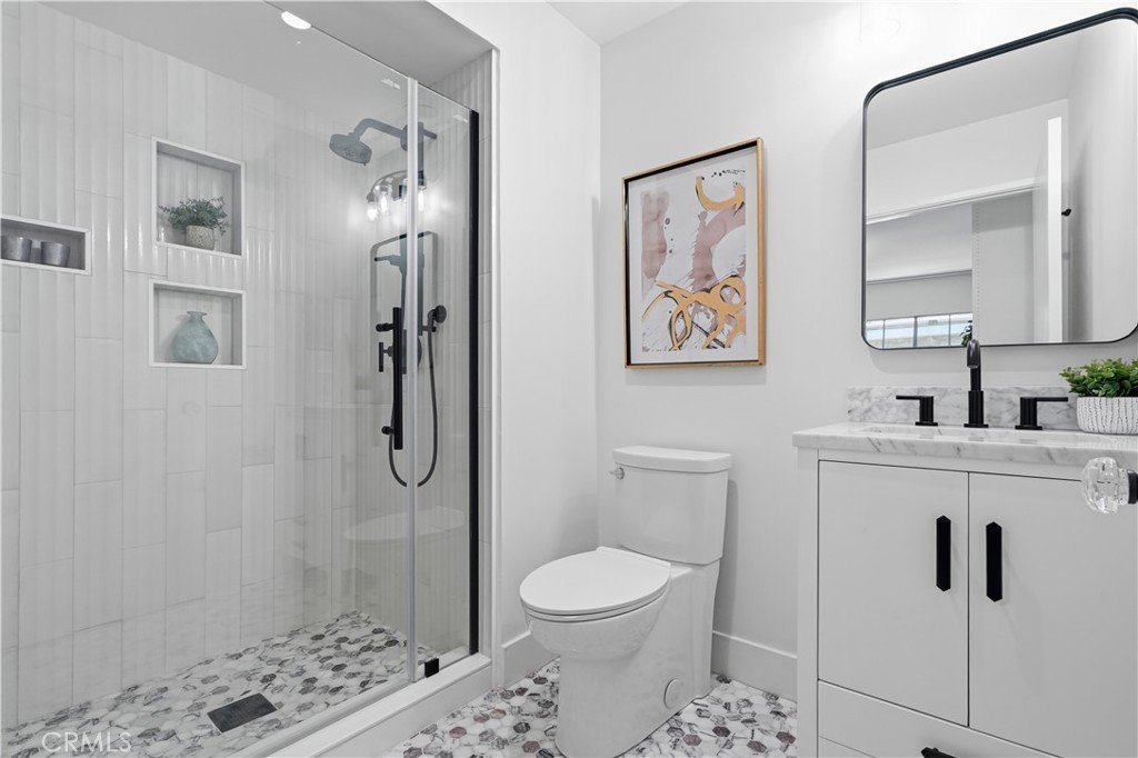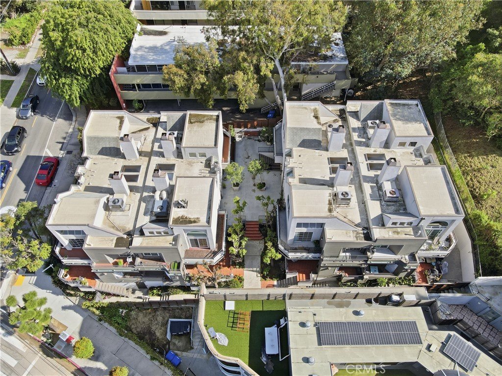 Ideally positioned across from Silver Lake Park & Recreation, Silver Lake Dog Park, and Silver Lake Meadows, this upgraded corner residence places you in the heart of one of LA’s most dynamic neighborhoods. Just moments from neighborhood cafés, dining, boutiques, and major freeways — with convenient access to Dodger Stadium, Hollywood Blvd, and Downtown LA — the location is as compelling as the home itself. Inside, an airy open-concept layout welcomes you with warmth and natural light. The living area centers around a cozy gas fireplace and flows seamlessly into the dining area, where sliding doors open to your patios — creating an inviting space for both everyday living and effortless entertaining. The kitchen has been thoughtfully updated with quartz countertops and a breakfast bar, sleek European-style white cabinetry, stainless steel appliances, an integrated dishwasher, updated sink and faucet, and a bold geometric backsplash. There is also a power room downstairs with its designated washer and dryer space. As you step upstairs, natural light pours in through skylights and expansive windows, illuminating the stairway that leads to two private bedroom suites. The primary suite features soaring vaulted ceilings, large windows, two spacious closets, roller shades, and access to a private wraparound balcony with reservoir views. Its en suite bath showcases dual sinks, updated vanities, modern fixtures, and stylish custom finishes. The secondary suite also offers two closets, its own updated modern restroom, and access to its own outdoor balcony. Additional features include recessed lighting throughout, fresh paint, recess lighting, updated baseboards, crystal door hardware, a modern tempered-glass front door with secure code lock, a newer water heater, and two side-by-side parking spaces with substantial storage are located directly below the unit. Situated in a well-maintained, gated 8-unit community with guest parking and secure common areas, this home offers the perfect blend of modern comfort, thoughtful upgrades, and unbeatable Silver Lake lifestyle living.