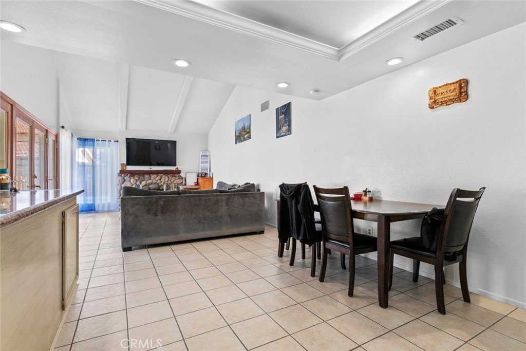 The formal living room and inviting family room boast soaring ceilings, with the family room centered around a cozy fireplace—perfect for relaxing or entertaining. Step outside to your private backyard oasis, complete with a covered patio, sparkling pool and spa, and plenty of space for outdoor gatherings or quiet retreat.