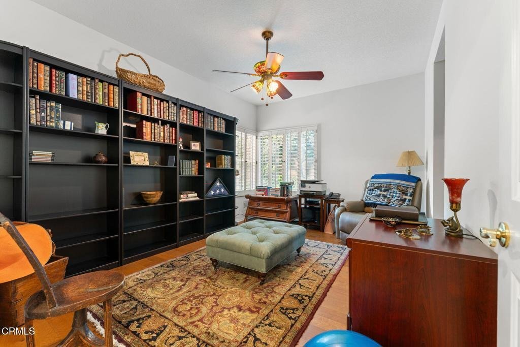 Welcome home! This highly desirable Estate Collection gem is exactly what you've been looking for. This 4,147 square foot home nestled on a nearly 12,000 square foot has delightful interior appointments and a backyard that's perfect for entertaining and gatherings. You'll initially notice a lushly landscaped front yard before approaching the cobblestone driveway & walkway. At the home's entry, through the front French doors, you'll notice the heightened ceilings and an open flowing floor-plan. The light & bright foyer with new maple wood floors opens to a step-down formal living room w/fireplace, beveled glass windows and a step-up spacious formal dining room. The family room also w/ its own fireplace joins, a spacious recently updated kitchen with quartz countertops and stainless steel appliances. Off of the kitchen area, you have a breakfast nook space and windows facing the aforementioned backyard. Rounding out the kitchen and family room gathering area, you'll find a traditional bar with sink, wine fridge and closet. Turning the corner on the lower-level is a half bath, a full bedroom that doubles as a library with ensuite bathroom & separate backyard side access, and convenient entry to your 3 car garage. Heading up the spiral staircase to the second level you'll find 4 additional bedrooms and 3 full baths. The massive primary bedroom has its own fireplace, reading/relaxation area and ensuite bathroom with dual sinks & soaking tub. The laundry room is also conveniently located on the second level. All widows throughout the home have wooden shutters. The backyard is the perfect blend of grassy/play space, and large pool/spa, for California outdoor living. Can you imagine summer evenings entertaining, swimming, dining at your built-in outdoor BBQ and, later, cozying up near your outdoor fireplace and waterfall? All this with no back neighbor... Conveniently located near top rated K -- 12 award winning West Valley Charter Schools, Pierce Community College, CSUN (California State University, Northridge), the Topanga Westfield Mall with Rodeo Road shopping and Topanga Social, the Topanga Village, the Topanga Promenade, Calabasas Commons, and the 101 & 118 freeways, this abode leaves very little to be desired. This is where you want to be!