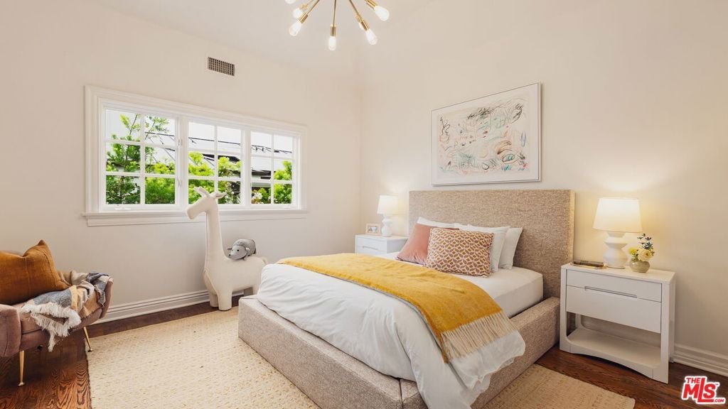 Located North of Montana, this updated three-story Contemporary English residence blends high ceilings, quality finishes, and a functional layout for refined Westside living. A grand foyer introduces elegant formal living and dining rooms, while the updated kitchen with custom cabinetry, wine refrigerator, and breakfast nook opens to a relaxed family room with seamless access to the backyard. The house has 3 stories. The primary suite offers treetop views, high ceilings, a fireplace, sunroom, and a spa-like bath with dual vanities, soaking tub, and generous closets. Additional bedrooms, flexible lower-level living space, and a guest suite provide versatility for modern living. Designed for entertaining, the private backyard features multiple patios, a grassy lawn, pool, and spa surrounded by mature hedges. Ideally located near Montana Avenue, Brentwood Country Mart, and within the Franklin School District, this is a rare opportunity in one of Santa Monica's most coveted neighborhoods.