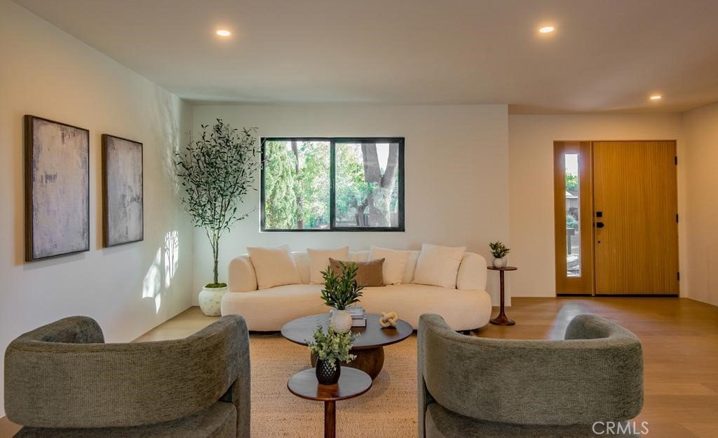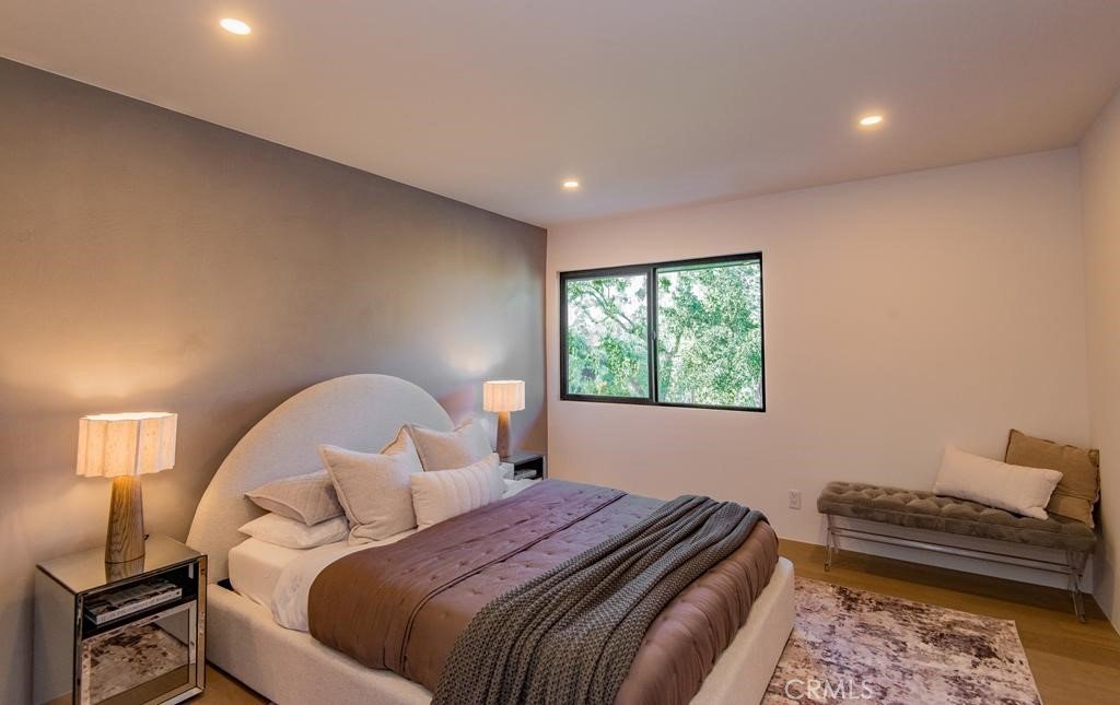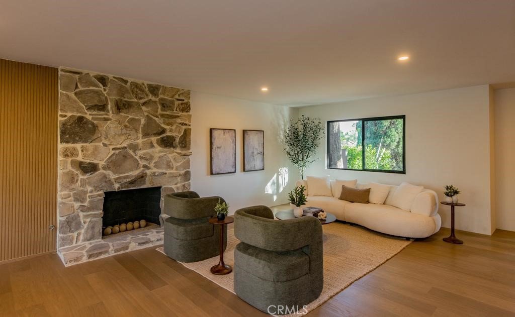 Views , Views , Views … Located West of Valley Circle situated on an extremely Huge Lot with Full wrap around City & Mountain Views !! This Completely Reimagined iconic 2 Story mid-century Modern home, timeless architectural Design with modern volume, warmth, and functionality ! 5 bedroom, 4 bath boasting 3527 sqft residence honors the original spirit of the Woodland Hills west design while elevating it for contemporary living. The homes layout has been redesigned to introduce an Open floor plan living room / Great room Dining room , kitchen creating an expansive sense of scale and light rarely found in homes of this era. true indoor-outdoor living allowing the interior spaces to flow effortlessly into the landscape. Throughout the home, custom oak cabinetry has been meticulously designed and built in every space, offering warmth, cohesion, and exceptional storage without compromising clean architectural lines. The dining room flows seamlessly with the Living room and kitchen making it ideal for entertaining. The Massive kitchen is both sculptural and functional, featuring Forno appliances, natural Porcelain countertops, and a Custom 10ft Kitchen island that serves as the heart of the home. The residence offers true primary suite thoughtfully positioned with Full city and Mountain View’s , 4 bedrooms on the Second level with the 5th bedroom “ in-law suite” on the main level of the home to provide privacy and flexibility perfect for guests, in-laws, or work-from-home needs. Outside the property sits on 16,700 Lot size continues to impress with an impressive Modern Linear 40ft Lap pool and spa with 2 Baha”s great for kids or pool lounge seating and umbrellas. An outdoor Builtin BBQ Entertainment area, and multiple zones designed for relaxation and entertaining. A Full / Pickle ball, Basketball Sport court leading to a lower level of the backyard pebbled fire pit area with plenty of seating area the sets the tone for gatherings both intimate and lively along with a 3 hole putting green. Every system in the home has been updated as this is a fully reimagined residence, offering the confidence of new construction with the soul of a mid-century classic. A rare opportunity to own a true architectural masterpiece rooted in history, redefined for modern life, and perfectly suited for the Woodland Hills West lifestyle.