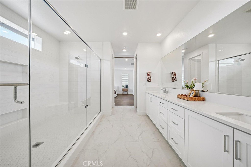 Come home to the first resale in the new Valencia community of "Arches" at Tesoro Highlands! No waiting for a view lot, this home is ready now and is landscaped and fully upgraded with high end finishes in neutral colors. Popular open floorplan too with full bed and private bath downstairs, 3 more good-sized bedrooms upstairs plus a huge loft! The primary bedroom has great views, a huge bathroom/shower and one of the largest walk-in closets around. Tasteful upgrades include LVP wide plank flooring and 24 x 24 Modern Formation tile, shutters, upgraded counters and Arabescato marble backsplash. Walk-in pantry and stainless appliances all make for a super sharp look. Everything looks just like a model and a great location too (on the view side) with a pool-sized lot that has the grass already in and a covered patio. The home is just months old so it really is brand new with a lot of the expense already done for you! Come home to Valencia!