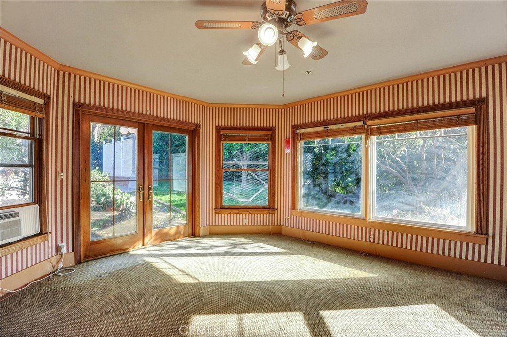 The main level features a large bedroom addition with beautiful backyard views, ideal for guests or multi-generational living. The kitchen flows seamlessly into an expansive dining area, complemented by a separate formal dining room—perfect for entertaining. The inviting family room overlooks the backyard patio, pool, and lush landscaping, creating a seamless indoor-outdoor living experience.
