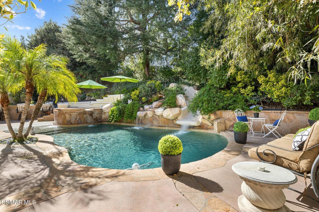 Tucked at the end of a quiet, tree-lined cul-de-sac with no HOA and PAID SOLAR, this private residence offers flexibility, function, and true indoor-outdoor living. Two mature birch trees frame the approach, leading to custom estate doors intentionally left in a natural finish--ready for the next owner's personal touch.The backyard is designed for gathering. Lush landscaping creates privacy around a PebbleTec beach-entry pool with a built-in slide concealed beside a rock waterfall. A half-moon stone bar and fully equipped outdoor kitchen set the stage for entertaining, while owner-owned solar supports both the home and pool for efficient year-round enjoyment. Plus a stone HALF-MOON BAR!Inside, the aesthetic blends clean contemporary lines with warm transitional elements, creating a layout that adapts easily to different styles. Smart-home features include remote-controlled blinds and LED lighting, a concealed charging station, and a touchless kitchen faucet. Off to the left is a ground-floor in-law suite complete with its own bathroom. The newly renovated kitchen is built for serious cooking, featuring brand-new appliances, an Italian Forno brass-burner range, wine cooler, beverage center, and generous prep space for more than one cook at a time. Additional upgrades include a Toto bidet toilet and a whole-house water softener system.A discreetly integrated home theater can disappear when not in use, preserving the comfort of the main living area. A dedicated gym provides space for training at home and can easily function as an additional bedroom or office.With parking for six or more vehicles--including space for boats, recreational vehicles, or business use--this property offers rare versatility. Private, practical, and designed for modern living, the foundation is here--bring your vision and make it your own.