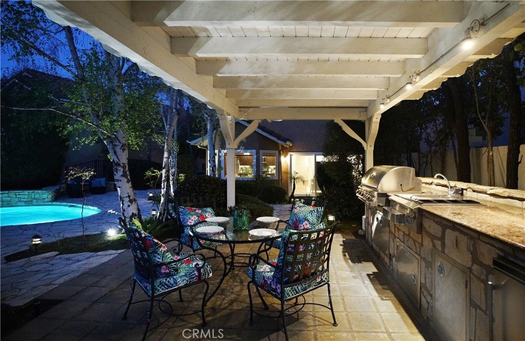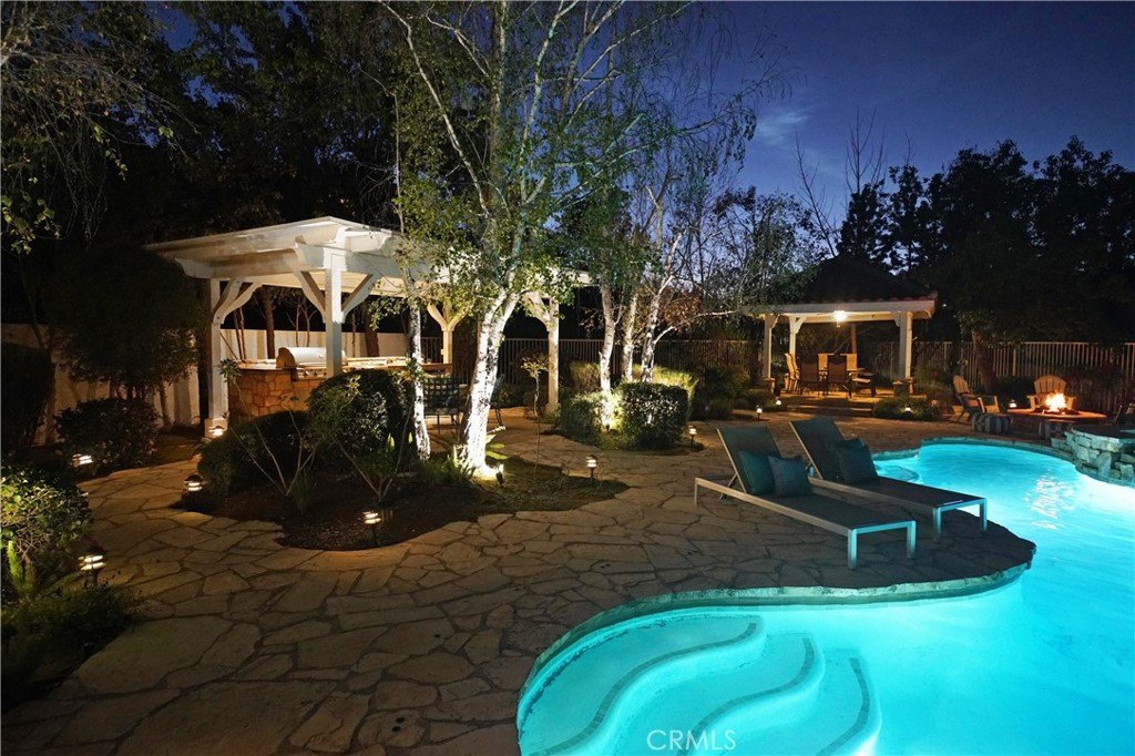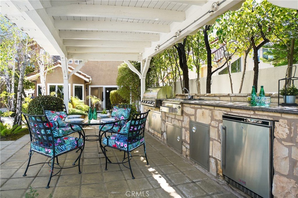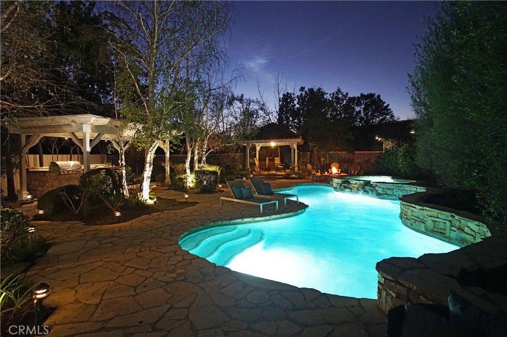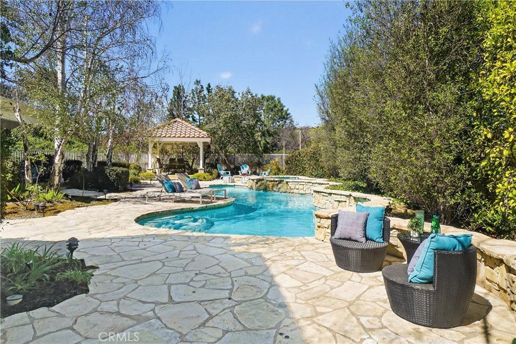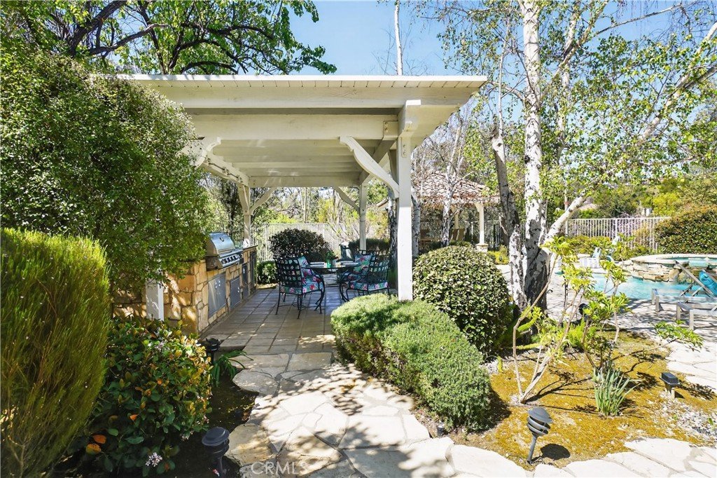 If I told you that you could live in a Calabasas home, in a guard gated community, with an amazing, spacious, entertainers backyard (pool, spa, outdoor kitchen, 2 gazebos - very rare for Calabasas Hills) and all the bedrooms have en-suite bathrooms - What would you say? Welcome to 24751 Calle Largo—where comfort, craftsmanship, and resort-style living come together in one of Calabasas’ most desirable gated communities. Thoughtfully renovated over the past 11 years, this exceptional home showcases quality upgrades and custom features throughout. The beautifully redesigned kitchen is the heart of the home, featuring custom cabinetry with pull-out pantry storage, a farmhouse sink, stainless steel appliances, and a one-of-a-kind built-in wood and glass dining table that comfortably seats up to eight—perfect for everyday living and entertaining alike. The home offers a highly desirable floor plan with expanded bedrooms, each with its own en-suite bathroom, providing both privacy and flexibility for family and guests. The luxurious primary suite is a true retreat, complete with a newly built spa-inspired bathroom featuring a rainfall showerhead and steam shower, along with a custom walk-in closet designed for maximum organization and storage. Throughout the home, you’ll find travertine, tile, and wood flooring, granite countertops in all spaces, and fresh interior paint—creating a warm, updated, and move-in ready environment. Step outside to your own private resort. The fully renovated backyard is designed for both relaxation and entertaining, featuring a sparkling pool and spa, an outdoor kitchen with built-in BBQ, sink, refrigerator, and granite counters, plus a spacious gazebo dining area ideal for hosting gatherings. Lush privacy landscaping enhances the serene and peaceful setting, while a fire pit adds the perfect touch for evening enjoyment. Ideally located, the home is just a short distance to Bay Laurel Elementary School within the award-winning Las Virgenes School District. Enjoy the convenience of nearby Calabasas Commons for shopping, dining, and community events, along with exclusive access to Calabasas Lake. The neighborhood also features a park and playground, all within the security of a gated community. This is more than a home—it’s a lifestyle. A place where years of cherished memories have been made, and where the next owner can enjoy comfort, privacy, and the best of Calabasas living.