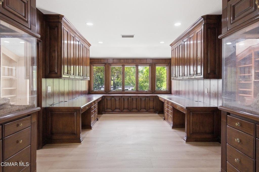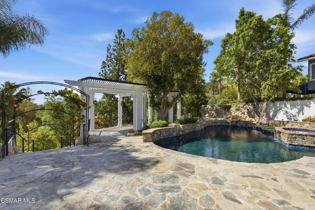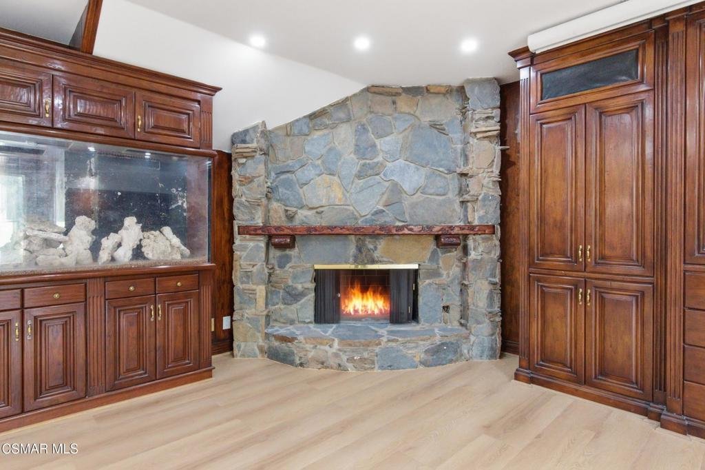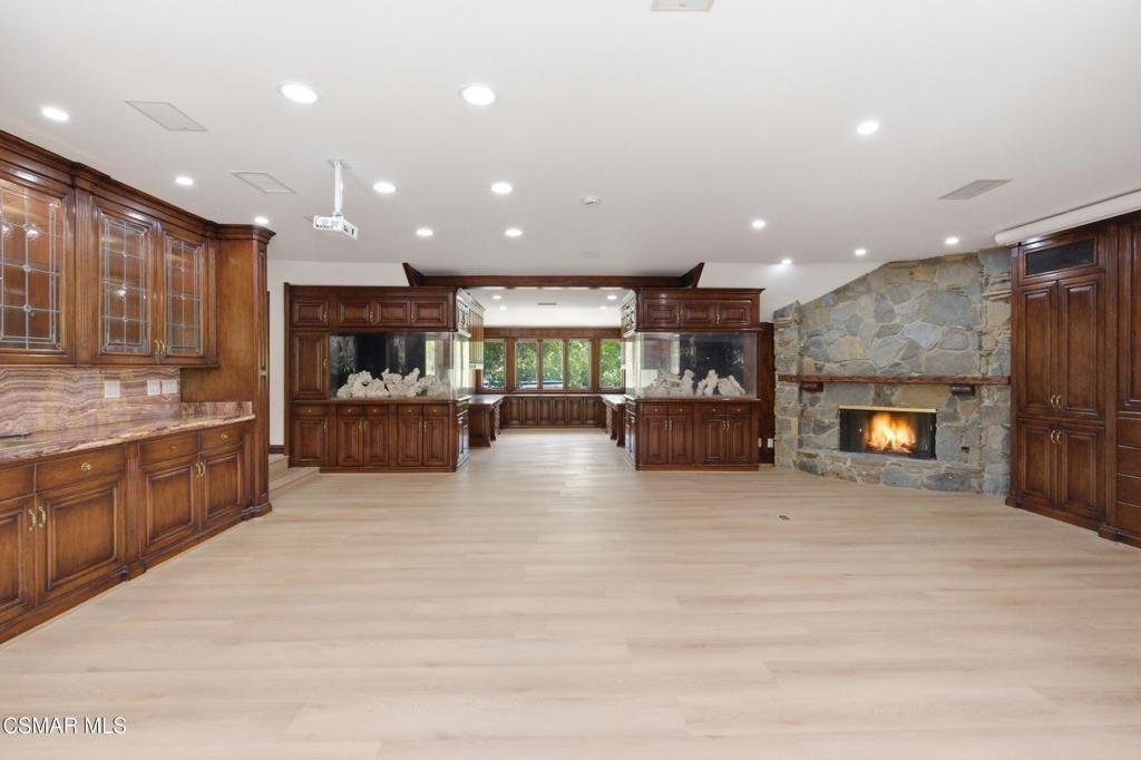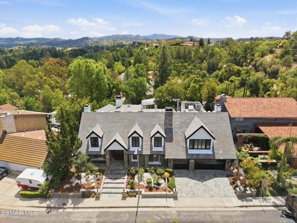 Welcome to 24756 Eilat Street, a stunning, fully reimagined estate in the heart of Woodland Hills! This exceptional 7-bedroom, 5.5-bath residence with 6255 square feet blends modern luxury with resort-style living, showcasing extensive upgrades inside and out.From the moment you arrive, the home makes a statement with a brand-new garage door, fresh exterior paint, sleek metal gates on both sides, and professionally designed landscaping featuring vibrant plantings, slate walkways, and over 250 LED lights that illuminate the property!Step inside through leaded glass entry doors to discover an open, light-filled interior enhanced by crown moldings, new LED lighting throughout, and a seamless blend of elegant finishes. The main level features striking marble and custom 24x48 ceramic tile flooring, while wide-plank LVP oak floors extend through the living spaces and bedrooms, creating warmth and continuity. Expansive windows flood the home with natural light, and multiple French doors connect indoor and outdoor living effortlessly.At the heart of the home is a chef's dream kitchen, complete with brand-new stainless steel appliances, a commercial-grade Wolf range with three ovens, dual dishwashers, granite countertops, and an oversized center island with sink. A walk-in pantry, abundant cabinetry, built-in breakfast nook, and sleek white finishes make this space as functional as it is beautiful.The home offers exceptional versatility with an open family room, formal dining room, and living room--each enhanced by elegant fireplaces. A custom wine cellar with capacity for approximately 1,000 bottles, limestone flooring, and refined finishes adds a sophisticated touch.Upstairs, all bedrooms feature LVP flooring and ceiling fans, while the luxurious primary suite is a true retreat. Enjoy vaulted wood-beam ceilings, a double-sided fireplace, built-ins, and a spacious walk-in closet with custom organizers. The spa-inspired bathroom boasts a large jacuzzi tub, an expansive marble shower with three showerheads and multiple jets, dual sinks, and a private water closet with bidet.The home also features a massive game and entertainment room with a 120'' movie screen, projector, wet bar, wine cooler, fireplace, and even dual 300-gallon aquariums. Additional spaces include three office areas, and a unique hidden passageway behind the upstairs bedrooms--perfect as a fun and functional hideaway.Step outside to your own private resort. The expansive backyard features a Pebble Tec pool and spa with five waterfalls, a six-seat cabana-style waterfall lounge, new slate decking, gym/meditation/massage room and beautiful views over Hidden Hills from dual newly built decks. Entertain effortlessly with a full outdoor kitchen including a Viking oven, pizza oven, BBQ, and refrigerator.Additional highlights include a downstairs bedroom and bath with a three-way shower, a dedicated laundry room with extra refrigeration, new dual-pane Milgard windows, new fencing, and multiple serene seating areas--including a romantic garden nook and grassy yard.Originally built and lived in by the developer of Valley Circle Estates Robert Zuckerman for past 43 years this one-of-a-kind residence has been thoughtfully upgraded over the years and offers an unmatched combination of space, privacy, and luxury. This is more than a home--it's a lifestyle!