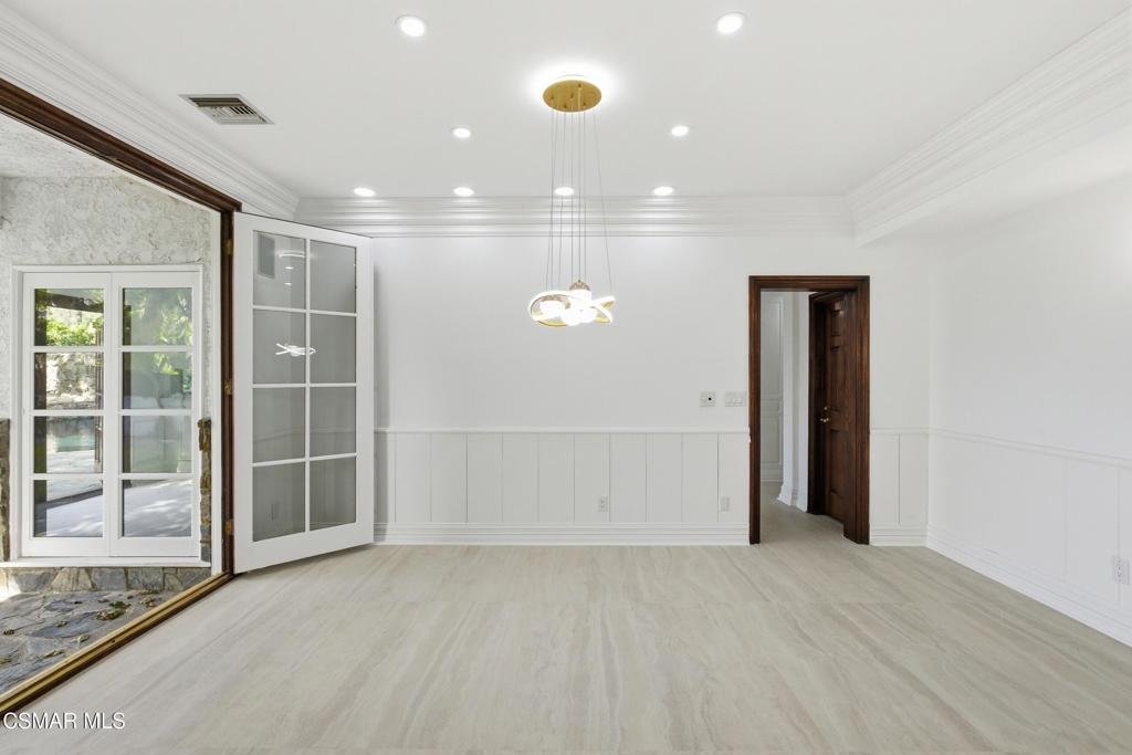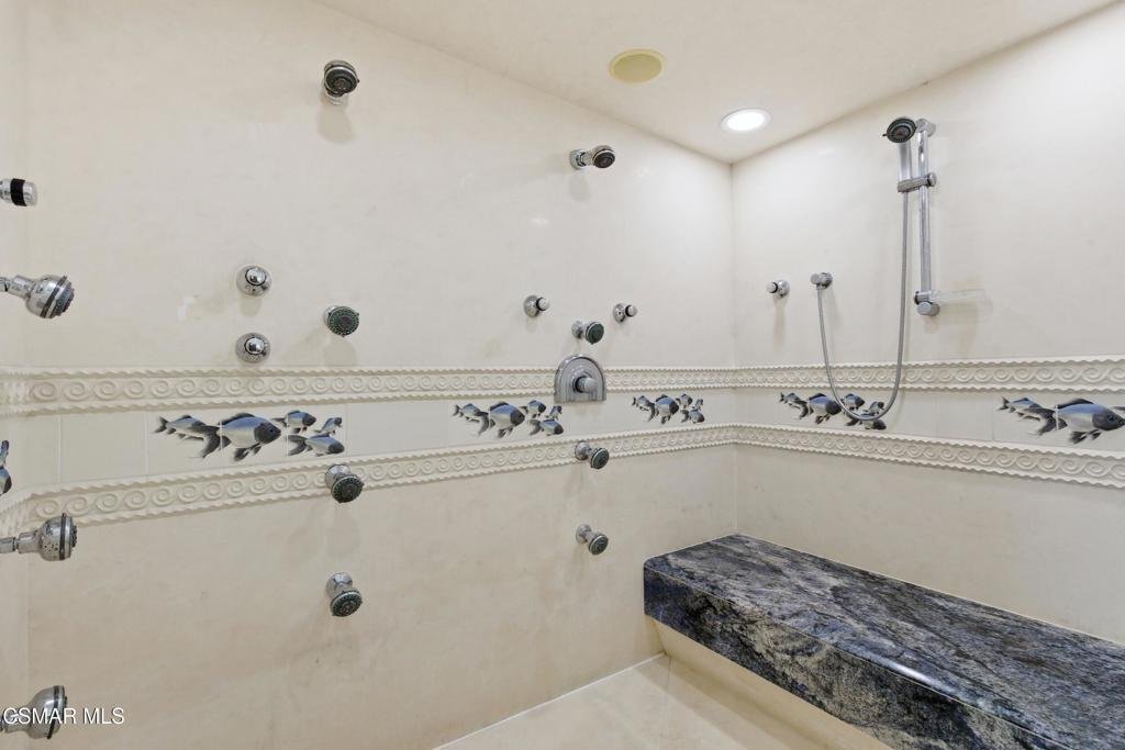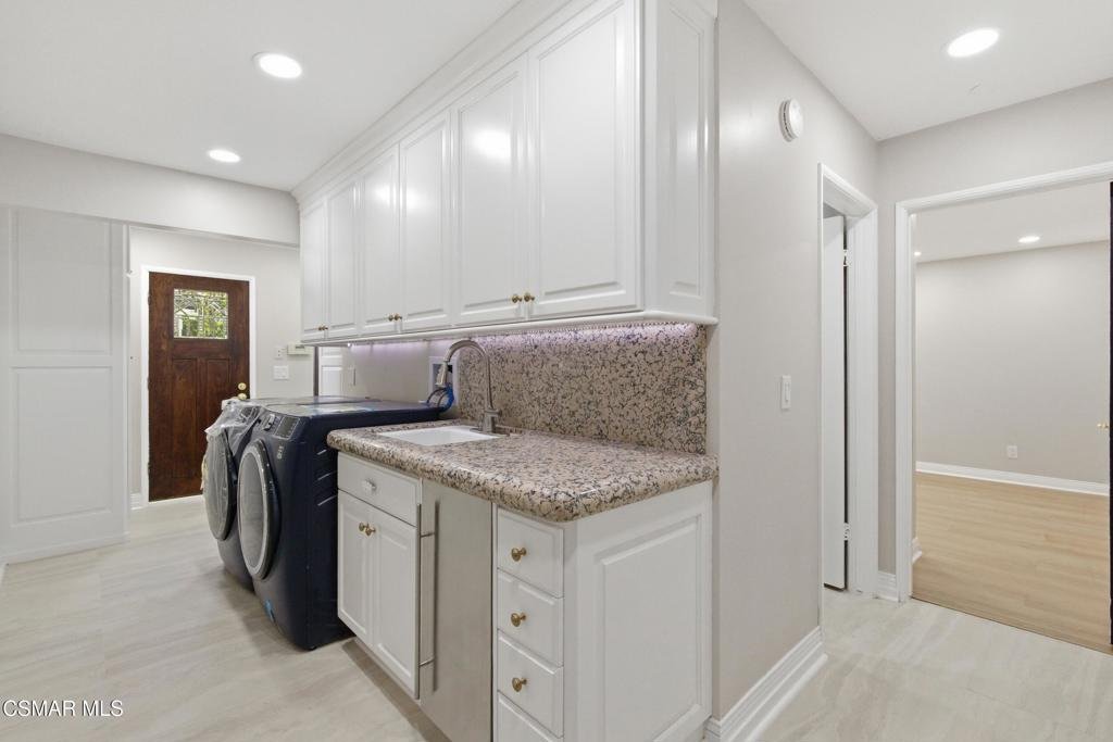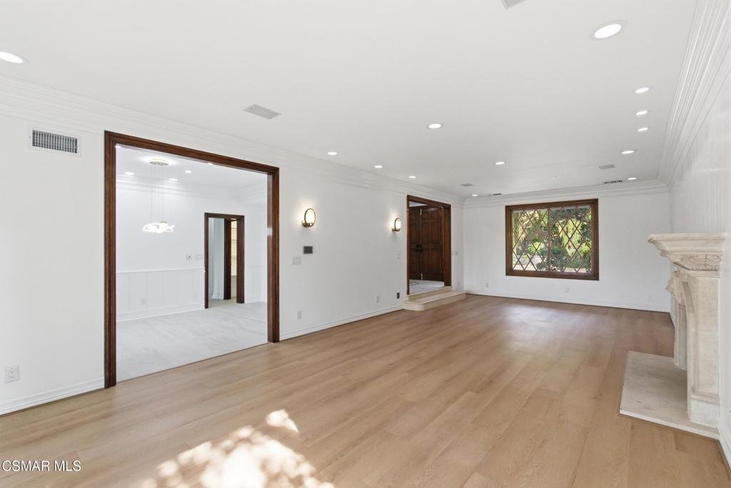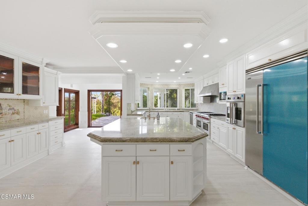 Welcome to 24756 Eilat Street, a stunning, fully reimagined estate in the heart of Woodland Hills! This exceptional 7-bedroom, 5.5-bath residence with 6255 square feet blends modern luxury with resort-style living, showcasing extensive upgrades inside and out.From the moment you arrive, the home makes a statement with a brand-new garage door, fresh exterior paint, sleek metal gates on both sides, and professionally designed landscaping featuring vibrant plantings, slate walkways, and over 250 LED lights that illuminate the property!Step inside through leaded glass entry doors to discover an open, light-filled interior enhanced by crown moldings, new LED lighting throughout, and a seamless blend of elegant finishes. The main level features striking marble and custom 24x48 ceramic tile flooring, while wide-plank LVP oak floors extend through the living spaces and bedrooms, creating warmth and continuity. Expansive windows flood the home with natural light, and multiple French doors connect indoor and outdoor living effortlessly.At the heart of the home is a chef's dream kitchen, complete with brand-new stainless steel appliances, a commercial-grade Wolf range with three ovens, dual dishwashers, granite countertops, and an oversized center island with sink. A walk-in pantry, abundant cabinetry, built-in breakfast nook, and sleek white finishes make this space as functional as it is beautiful.The home offers exceptional versatility with an open family room, formal dining room, and living room--each enhanced by elegant fireplaces. A custom wine cellar with capacity for approximately 1,000 bottles, limestone flooring, and refined finishes adds a sophisticated touch.Upstairs, all bedrooms feature LVP flooring and ceiling fans, while the luxurious primary suite is a true retreat. Enjoy vaulted wood-beam ceilings, a double-sided fireplace, built-ins, and a spacious walk-in closet with custom organizers. The spa-inspired bathroom boasts a large jacuzzi tub, an expansive marble shower with three showerheads and multiple jets, dual sinks, and a private water closet with bidet.The home also features a massive game and entertainment room with a 120'' movie screen, projector, wet bar, wine cooler, fireplace, and even dual 300-gallon aquariums. Additional spaces include three office areas, and a unique hidden passageway behind the upstairs bedrooms--perfect as a fun and functional hideaway.Step outside to your own private resort. The expansive backyard features a Pebble Tec pool and spa with five waterfalls, a six-seat cabana-style waterfall lounge, new slate decking, gym/meditation/massage room and beautiful views over Hidden Hills from dual newly built decks. Entertain effortlessly with a full outdoor kitchen including a Viking oven, pizza oven, BBQ, and refrigerator.Additional highlights include a downstairs bedroom and bath with a three-way shower, a dedicated laundry room with extra refrigeration, new dual-pane Milgard windows, new fencing, and multiple serene seating areas--including a romantic garden nook and grassy yard.Originally built and lived in by the developer of Valley Circle Estates Robert Zuckerman for past 43 years this one-of-a-kind residence has been thoughtfully upgraded over the years and offers an unmatched combination of space, privacy, and luxury. This is more than a home--it's a lifestyle!