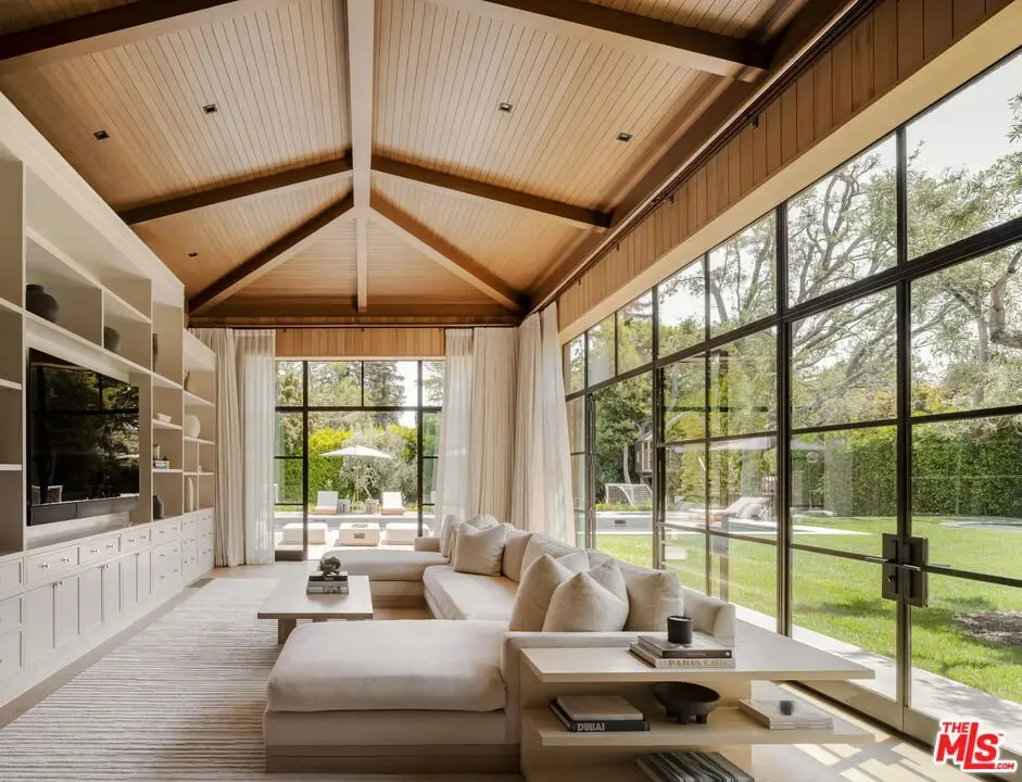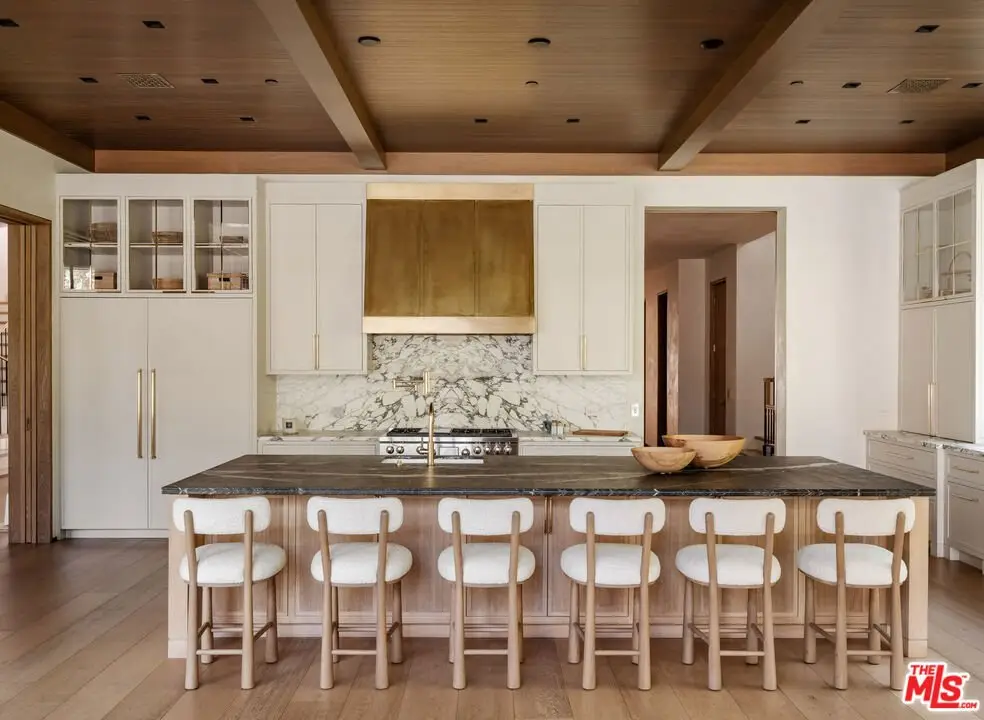 A gorgeous feat of modern design, Two Fifty South unites high style with timeless livability. Set behind gates on a rare, flat parcel in the heart of Brentwood Park, this renovated estate was recently reimagined by acclaimed fashion designer Petra Ecclestone and Sam Palmer. Warm yet modern, Two Fifty South blends architectural sophistication with an inviting California sensibility. Thoughtfully transformed in 2024, the home spans approximately 13,500 square feet across three levels and sits on over half an acre of manicured grounds offering privacy and elegance in one of Los Angeles's most coveted neighborhoods. Twelve-foot ceilings rise across all three floors, complemented by hand-applied Roman plaster walls and wide-plank white oak floors in soft, neutral tones. The main level flows through three distinct sitting areas, dual offices, and a formal dining room that seats 20 guests. At the heart of the home is a stunning open kitchen with an oversized center island connected to a fully appointed secondary chef's kitchen, designed for seamless entertaining.Upstairs, five bedrooms each with an ensuite bath anchor the private wing. The primary suite offers vaulted ceilings, dual spa-inspired bathrooms, two custom dressing rooms, and a private terrace with treetop views. On the lower level, a curated collection of amenities includes a golf simulator, bar, guest suite, gym with steam room, and a private theater, all designed to elevate day-to-day living. A canopy of mature olive trees and California native landscaping sets the tone for the gardenlush, expansive, and designed for both leisure and play. Wood decking surrounds a sparkling pool, while hot and cold plunge pools, an outdoor shower, and a thoughtfully placed soccer pitch invite year-round activity and connection. A custom-built treehouse adds a sense of charm, and is seamlessly integrated into the landscape.Additional features include a dedicated staff area with kitchen, lounge, dog room, and a security suite with the latest monitoring technology. The estate also offers garage and motor court parking for up to 12 vehicles, with a carriage-style driveway for guests.Moments from the Brentwood Country Mart, the Riviera, and top private schools, Two Fifty South is an uncompromising expression of inspired modern design offering an exciting opportunity to own a fully realized, resort-like estate in the heart of Brentwood Park.