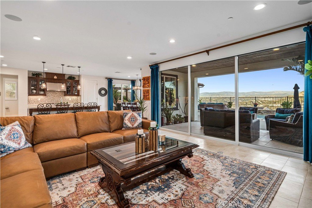 Welcome to elevated luxury living in the prestigious gated community of Aliento. This former model home showcases designer-selected finishes, custom landscaping, and premium upgrades throughout — offering a rare opportunity to own one of the community’s most thoughtfully appointed residences. This stunning 4-bedroom, 3.5-bath view home features panoramic city and mountain vistas, a sparkling in-ground pool, a fully owned 28-panel solar system, and an extraordinary covered outdoor kitchen pavilion — creating the ultimate California indoor-outdoor lifestyle from sunrise to evening lights. Inside, a bright open floor plan is designed for both entertaining and comfortable daily living. Walls of windows and stacked sliding glass doors flood the home with natural light while blending indoor and outdoor spaces. A main-level bedroom with full bath offers flexibility for guests or multi-generational living. At the heart of the home, the gourmet kitchen features abundant prep space, GE Profile appliances, modern finishes, and flows beautifully into the great room, highlighted by a fireplace set within a stacked-stone feature wall — perfect for gatherings or relaxing evenings. A private office overlooking the backyard provides a peaceful place to work or study. Upstairs, a spacious loft offers versatility for a media lounge, playroom, or additional living space. The primary suite is a true retreat, featuring breathtaking views from its private covered balcony. The spa-inspired bath includes a walk-in shower, soaking tub, and custom California Closet system. Two additional secondary bedrooms, a well-appointed bath, and a laundry room with sink complete the upper level. Step outside to your private resort-style yard, where custom front and rear landscaping frame the home beautifully. A covered pavilion anchors one of the most impressive outdoor kitchens you’ll find — featuring a 48-inch grill, double burners, teppan cooking station, TV, and extensive storage — all set beside your in-ground pool with sweeping scenic views. Ideally located near shopping, dining, and conveniences including Trader Joe’s, Starbucks, Target, Lowe’s, and more — plus access to Aliento’s Terrace Club amenities with pool, gym, trails, and community spaces — this home delivers the perfect blend of lifestyle, luxury, and location. A rare opportunity to own a former model view home in one of Santa Clarita’s most sought-after gated communities.
