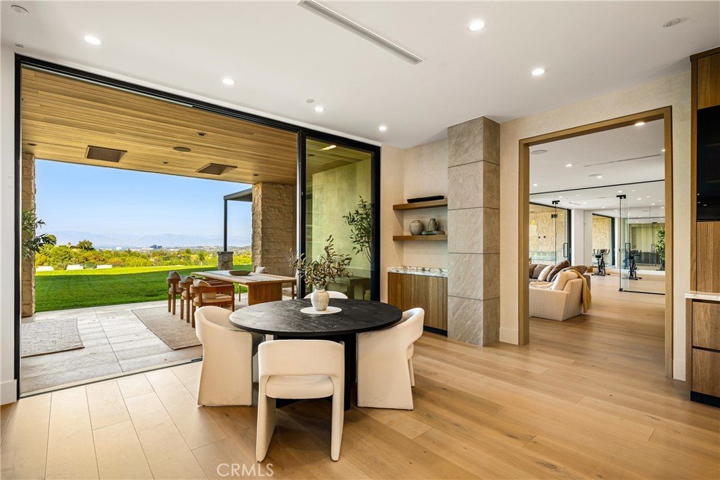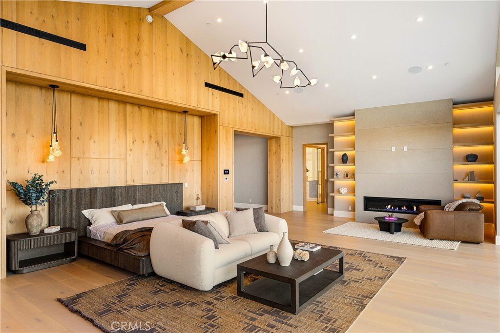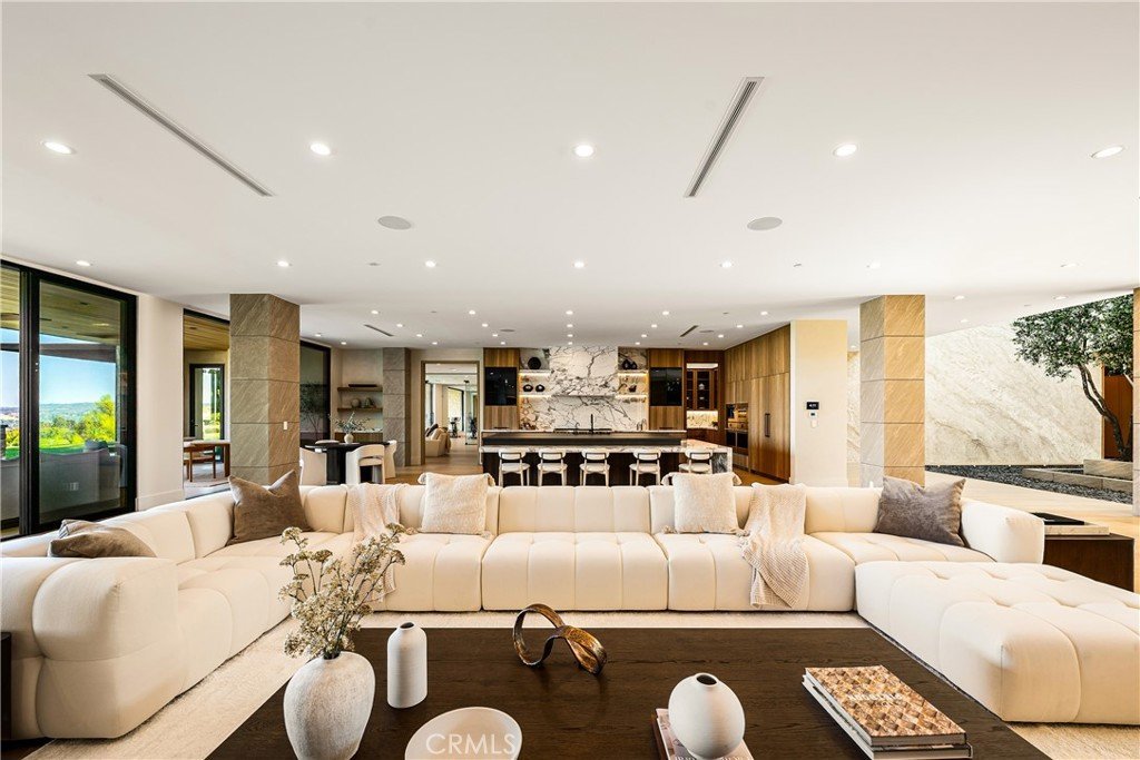 Perched on a pristine 1.6-acre lot in the prestigious Ashley Ridge enclave of Hidden Hills, this newly constructed estate is a masterpiece of modern luxury and design. From the moment you step through the custom front door, you're welcomed into a world of refined elegance. A breathtaking two-story foyer crowned by a full glass ceiling floods the interior with natural light, setting the stage for the home's extraordinary ambiance. The expansive open floor plan is designed for both grand entertaining and effortless daily living. At its heart is a chef’s dream kitchen featuring a large center island with counter seating, a spacious breakfast area, and an adjoining butler’s pantry equipped with a separate catering kitchen. The kitchen flows seamlessly into a spectacular great room with sliding glass walls, a two-sided fireplace, and an adjacent living lounge complete with a stylish seating bar and a glass-enclosed, temperature-controlled wine display. Additional highlights include a formal dining room, a sunlit private office with picture windows, a state-of-the-art home theater with acoustic fabric walls, a large game room, and an oversized gym and spa area featuring a steam shower and sauna. Upstairs, a dramatic vaulted den with open-beam ceilings and a full wall of glass overlooks the beautifully landscaped grounds. With six generous en suite bedrooms—two on the main level and four upstairs—this home offers both comfort and privacy. The opulent primary suite is a true sanctuary, complete with a fireplace, two luxurious bathrooms (each with a soaking tub), custom walk-in dressing rooms, and a private balcony showcasing sweeping views of the city lights and rolling hills. The resort-style backyard is equally impressive, featuring a stunning zero-edge infinity pool and spa, over 2,000 square feet of covered outdoor living space with a fireplace and full barbecue kitchen, and expansive lawn areas perfect for recreation or entertaining. This trophy estate delivers a rare blend of architectural brilliance, top-tier amenities, and an unbeatable location on one of Hidden Hills' most coveted streets.