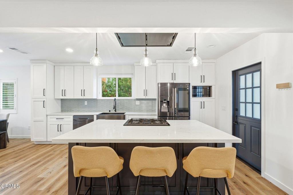 Experience the perfect blend of Altadena charm and modern luxury in this stunning compound featuring a 3-bedroom, 2-bathroom main residence and a private, income-generating 1-bedroom, 1-bathroom ADU with in-unit laundry. Meticulously updated in 2019, the main home showcases high-end finishes and custom craftsmanship, while the 2021-built ADU offers a turnkey rental opportunity with its own separate address. Both homes feature open-concept kitchens with handsome cabinetry, Samsung appliances, and dual-pane windows with shutters. Step outside to a peaceful backyard retreat with a grassy lawn and pergola--ideal for al fresco dining. Additional highlights include solar panels (keeping electricity bills to a steady ~$75/mo), a gated driveway, and a finished garage with a convenient half-bath. The main home has been measured at 1,525 square feet and the ADU at 498 square feet.