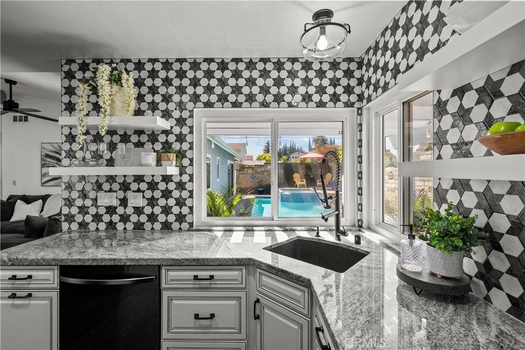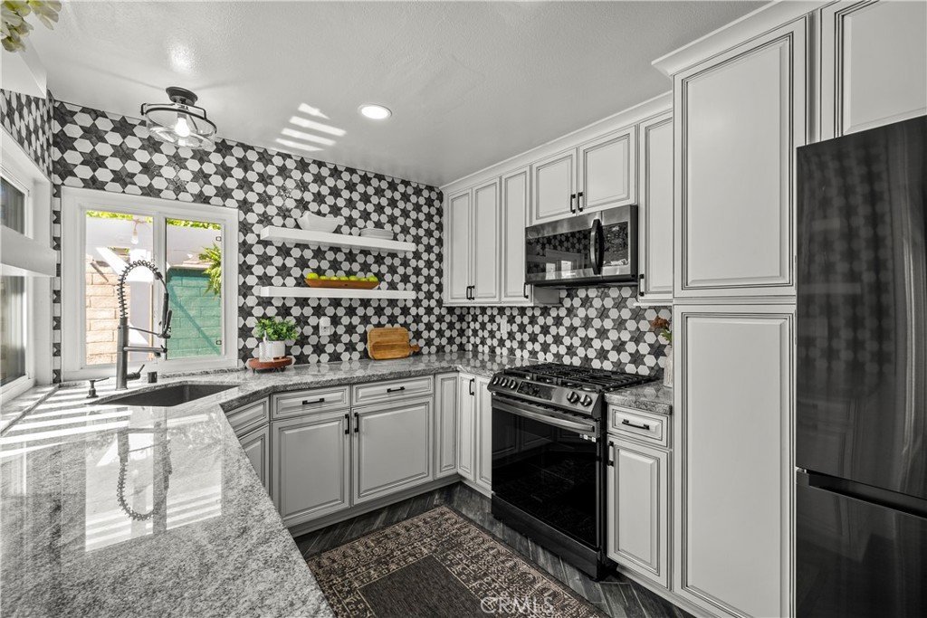 The fully remodeled kitchen is a true centerpiece, showcasing vibrant tile and granite countertops, and new matching Samsung appliances. Do your dishes while looking out at your backyard oasis. Designed with both functionality and style in mind, it flows effortlessly into the adjacent dining area and family room, creating an ideal space for family meals and gatherings. The spacious primary suite offers a peaceful retreat, complete with custom closets and storage, bright natural light and a calming ambiance with direct access to your backyard. Its fully remodeled en-suite bathroom features modern finishes and fixtures, delivering a spa-like experience with carefully curated details. Three additional bedrooms provide versatility for family, guests, or a home office, each filled with natural light and finished with new carpet and fresh paint. The secondary bathroom has also been tastefully remodeled, offering both comfort and style for residents and visitors alike. A conveniently located laundry room adds to the home’s everyday practicality. Outside, the home continues to impress with freshly painted exterior surfaces and newly refreshed landscaping that enhance its curb appeal. The private backyard is an entertainer’s dream, featuring a pool and relaxing spa perfect for enjoying Southern California’s year-round sunshine.