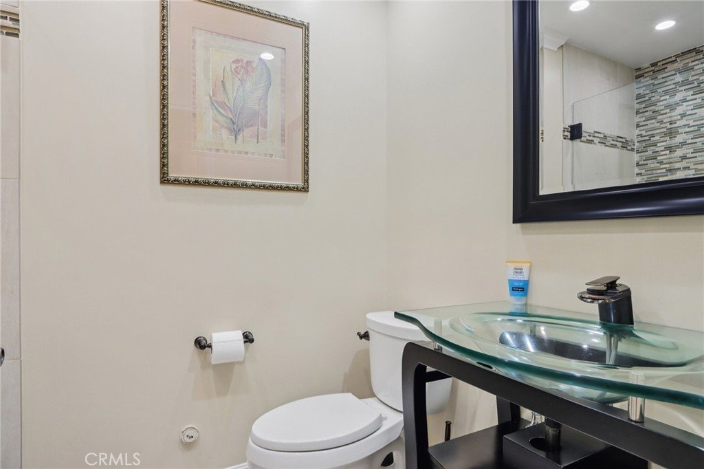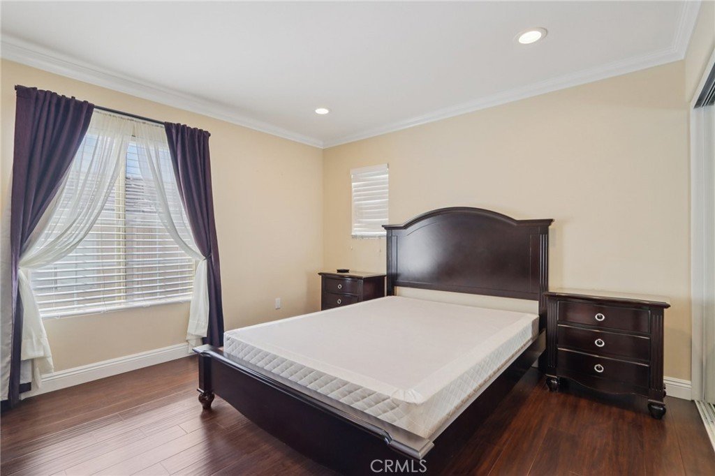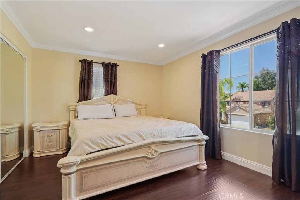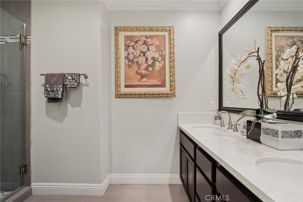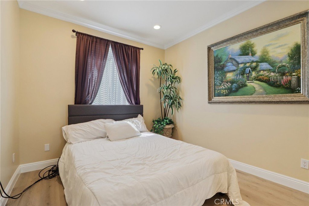 Stunning two-story home in desirable Stevenson Ranch featuring 4 bedrooms and 3 bathrooms, including a convenient downstairs bedroom and full bath. Offering approximately 2,698 sq ft of living space on a 5,656 sq ft lot, this beautifully remodeled home (2017) showcases a custom wrought iron entry door, high-gloss porcelain flooring, recessed lighting, and a formal living room with cathedral ceilings. The gourmet kitchen features a center island, granite countertops, custom cabinetry, and opens to the family room with fireplace and sliding glass doors leading to a landscaped backyard. Upstairs offers laminate wood flooring throughout, a bright primary suite with walk-in closet, and a spacious bathroom with dual sinks and walk-in shower. Secondary bedrooms are generously sized with ample closet space. Additional features include a separate laundry room with top-of-the-line washer and dryer, a security alarm system, and an attached 3-car garage with tiled flooring, built-in workstation, and automatic car lift.