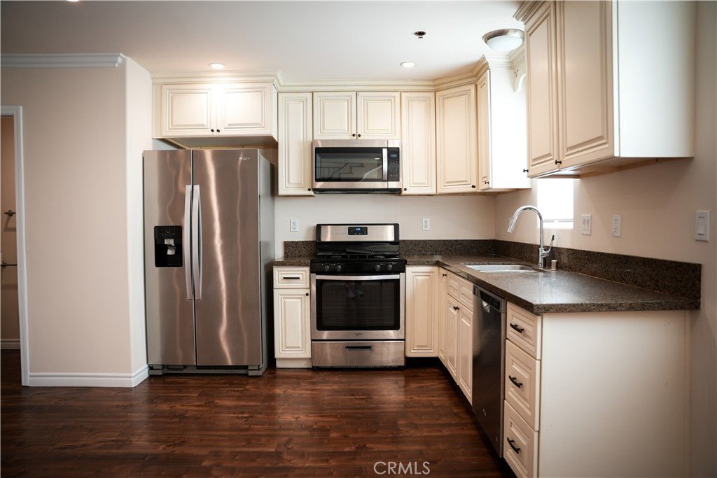 Welcome to this beautiful and inviting home nestled in the peaceful hills of Harbor City, offering the perfect blend of comfort, style, and convenience. Located in a quiet hillside community with low HOA, the home enjoys a calm residential setting while being just minutes from shopping centers, restaurants, recreation areas, the beach, and quick access to the 110 Freeway, making everyday living and commuting easy. The exterior features attractive architecture with warm tones, stone accents, and elegant wrought-iron railings, creating charming curb appeal. A clean and spacious driveway with garage access adds convenience and privacy within the well-maintained community. Inside, you are welcomed by a bright and spacious living area with beautiful dark wood flooring, recessed lighting, and an open layout that creates a warm and comfortable atmosphere. Large windows bring in abundant natural light, while the decorative staircase with iron railings adds character and architectural charm. The modern kitchen is both stylish and functional, featuring cream-colored cabinetry, granite countertops, and stainless-steel appliances, including a refrigerator, stove, microwave, and dishwasher. Ample cabinet storage and generous counter space make it perfect for cooking and entertaining, while the open design connects seamlessly with the living area. The bedrooms are spacious and comfortable, featuring soft carpet flooring, natural light, and neutral tones that create a relaxing environment. Mirrored closet doors provide excellent storage while enhancing the sense of space.