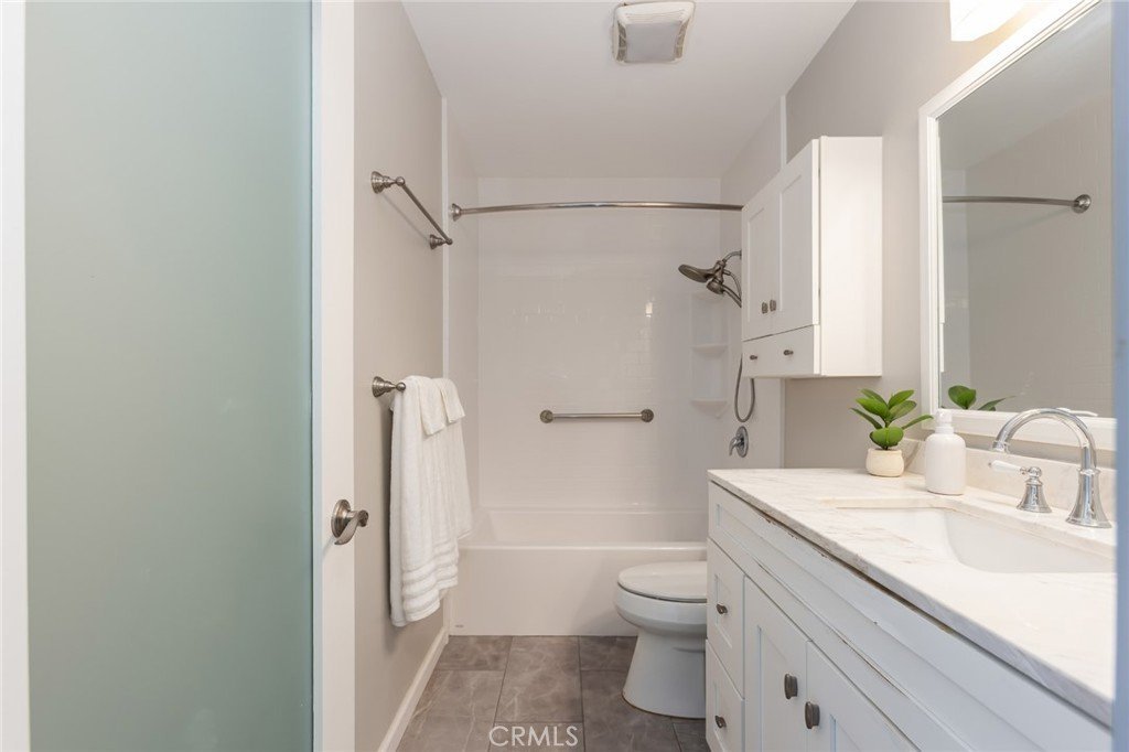 The bright and airy interior features an updated kitchen with soft-close cabinetry, stainless steel appliances, granite countertops, composite sink, and a breakfast bar for additional seating. A cozy dining area sits just off the kitchen, while the expansive living room provides ample space for both a living area and home office. Both bedrooms are spacious and versatile, and recent upgrades include new flooring, dual-pane windows, and updated kitchen and bathroom finishes—making this home truly move-in ready. Convenience continues with two side-by-side parking spaces and a private storage area located directly below the unit. The community offers a pool and spa, BBQ area, recreation room, community laundry, and utilities including water, gas, and trash. Ideally situated near shopping, dining, trails, and local attractions, this home offers an excellent opportunity for someone seeking comfort, value, and location. This home is located in a census tract that qualifies for a free GRANT of up to $20,000 call for details.