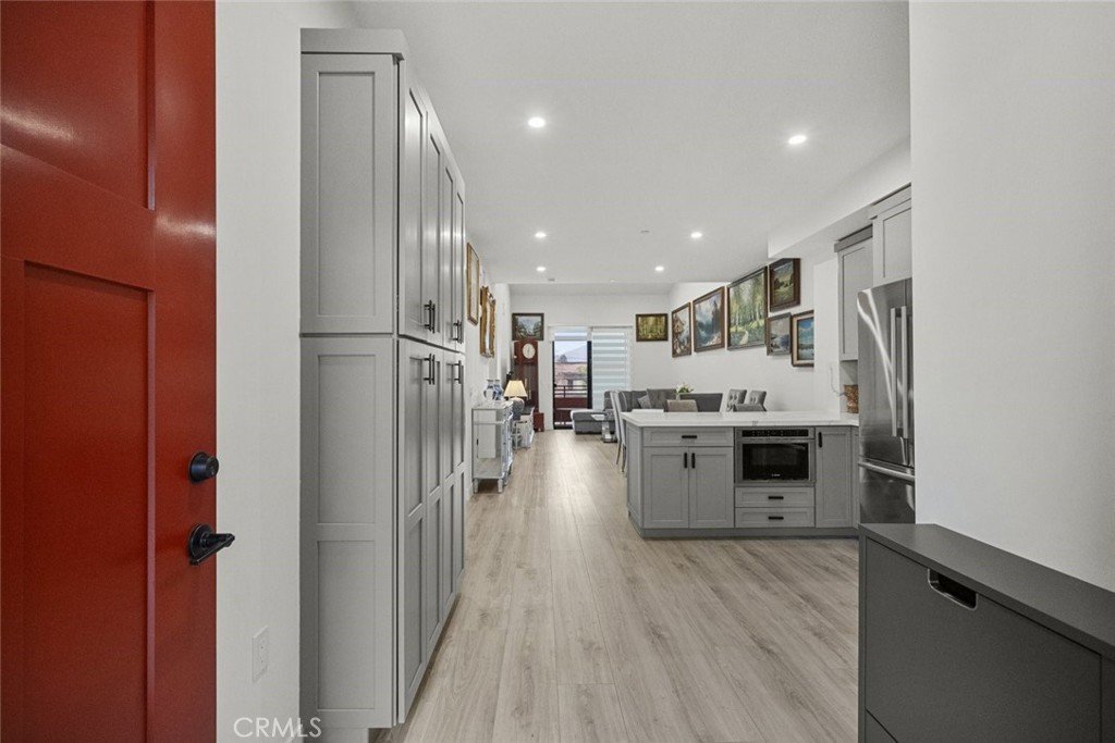 Welcome to this light filled 2 bedroom 2 bathroom condo located in the heart of Montrose, offering over 1000 square feet of well designed living space. Positioned on an upper level, this residence features an open layout with wide plank flooring, recessed lighting, and large windows that provide abundant natural light throughout.