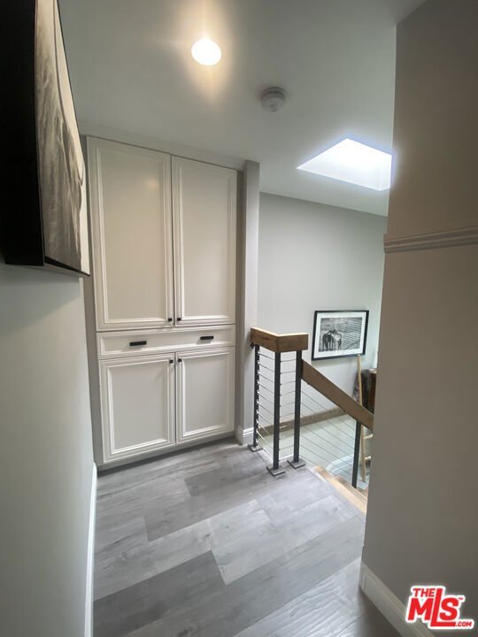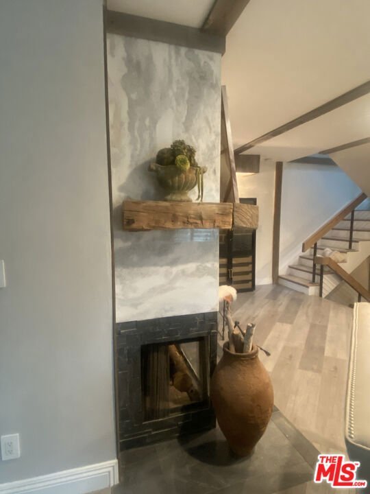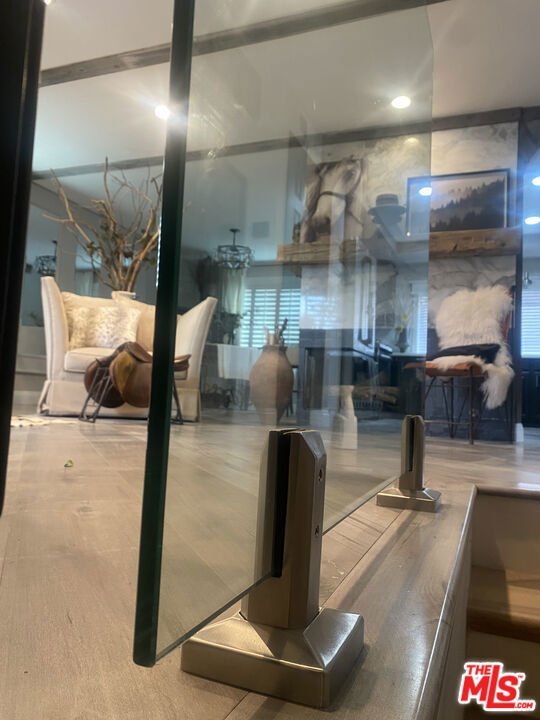 A Rare Opportunity: Beautiful TURN-KEY Curated Contemporary Ranch Style, End-Unit, with Hillside and Pasture Views. Situated across from white-fenced private equestrian estate, this complete renovation, sits above street level, offering privacy with no shared walls (air-gap build), AND opportunities for horse views. Driven by a passion for design and local natural beauty and equestrian influence, this home is the result of inspired renovation, and well thought out selection and planning. By integrating/collecting materials like snow-faded reclaimed wood, the design brings the outdoors in. The quality of life is elevated by custom built-ins throughout, maximizing usage and everyday comfort. Entryway: 10-foot ceiling with reclaimed beams and a rustic iron chandelier create a warm welcome. Powder Room: Features a stone-top wooden vanity, floor-to-ceiling stone and marble, and new lighting. Stairways: Wood treads continue up to bedrooms, accented by cable and wood railings. Entering the living room at the top of the wood treads steps, a modern tempered glass safety panel opens the view. Main Living Area: Living Room: Blends modern design with warmth, showcasing a floor-to-ceiling marble and stone fireplace with a vintage beam mantle. Features commercial-grade, multi-tone wood laminate flooring installed on a diagonal in most spaces. Entertainment & Bar: Custom-built entertainment center and a separate wine bar offer both beauty and function. Lighting & Tech: New Lutron dimmer switches can create the perfect ambiance and lighting .Enjoy a tranquil, enclosed courtyard-style patio, offering a private oasis for container gardening or relaxation, with a beautiful breeze. Wall Detail: Semi-open concept living/dining walls feature six- 6ft beveled mirror panels surrounded by wainscoting to reflect light and maintain connection between rooms. Kitchen & Dining: Newly built-in 1/2 kitchen extension for maximized utility. New wood cabinetry with large soft-close drawer, a dedicated pantry, coffee station, and abundant storage. Newly created Dining Bar: Showcasing a solid, custom curved countertop, this conversational focal point serves as an ideal landing for food prep and socializing, with a view of the TV area while seated. Surfaces: Premium white with grey accents/quartzite, white marble backsplash tile/wall covering, and custom cornice trim. Coordinated Finishes: Stainless steel ranch sink with a matte gold sprayer faucet and matching accents for a cohesive mixed-metal look. Stairs up to Bedrooms feature reclaimed wood trim/hand sanded plaster wall, 20 ft ceilings and a skylight. Platform: Relax with coffee or a book ,where beautiful am light shines through a large custom trim window. The top floor: custom-built large linen cabinet with a soft-close drawer. Primary Suite: Cathedral vaulted ceilings, recessed lighting, art-deco crystal chandelier, and ranch shutters. Includes an 8ft tall wall closet with shoe accessory/shelving. Primary Ensuite: Deep soaker tub/shower, new marble-top vanity, and matte gold fixtures. Guest Bedrooms: Two additional bedrooms with chandeliers, mirrored closets, and attractive window coverings. Guest Bathroom: Features a walk-in shower with a custom niche and high-end materials consistent with the primary ensuite. Stairs to garage are tile to take the wear, and have a splash of spanish accent tile, to tie in the rustic entry. Garage & Safety: Attached 2-Car Garage: Electric door, outside key pad, lots of storage, shoe area/storage and bench, laundry hookups. Peace of Mind: Built-in security storage, Blink camera doorbell, and double-pane windows for noise reduction. Community: Access to a peaceful pool, spa, and clubhouse. Location: Minutes from local markets and hiking trails. Malibu's beaches and Pepperdine University are a scenic drive through the canyon. Education: Highly-regarded Las Virgenes School District. HOA- wifi, water use, maintained grounds, and structure maintenance/EQ insurance.