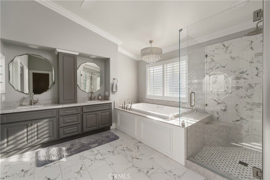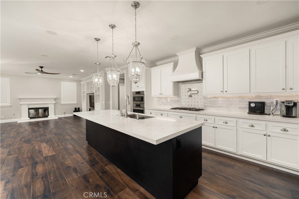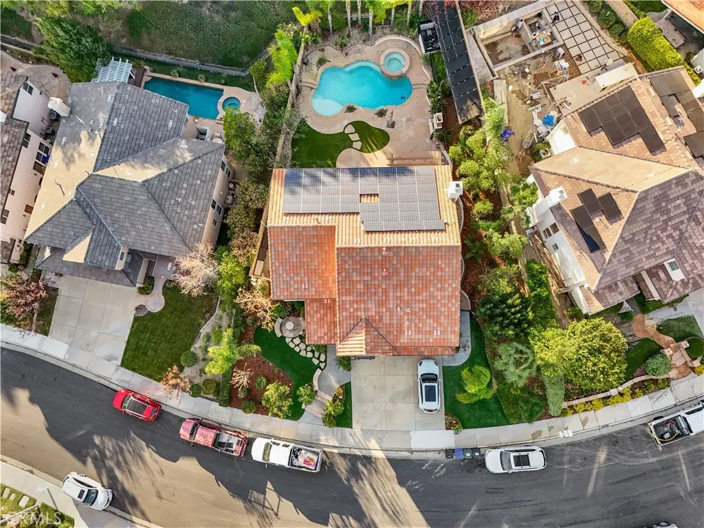 This gorgeous home in Stevenson Ranch is one of a kind! The move-in ready 4 bedroom, 3 bath home includes an office, an open loft, and a formal dining room. It has been recently remodeled with many upgrades including crown molding, custom jambs and base, custom cabinets with roll out shelves and new hardware throughout, custom entertainment cabinets and library shelves in the living room, quartz counter tops and stainless appliances in the kitchen as well as can lights. Custom shutters, bamboo or hardwood flooring and tile flooring are in every room in the home. The laundry room is located on the 2nd floor which includes a utility sink and more custom cabinets. The primary bedroom is large with a spacious bathroom featuring an oversized soaker tub, large shower, large walk in closet with built-in closet organizers. The amazing backyard is ready for you to entertain, with an exquisite pool, jacuzzi with separate heating solar heating system, back yard fireplace, outdoor kitchen that includes sink, BBQ, fridge, kegerator and bar that can sit 6 or more people. You must see this home in person to appreciate all it has to offer!
