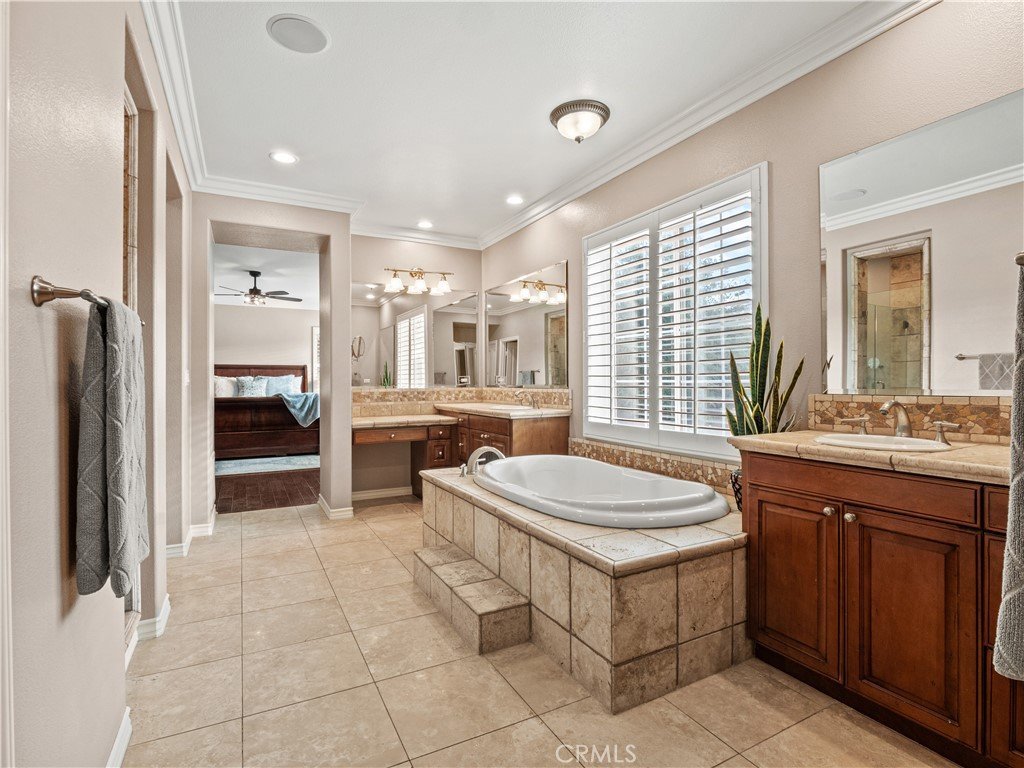 Luxurious Westridge Pool Home, Located on a cul-de-sac with over 14,000 SQFT of space, this stunning 5-bedroom, 4.5-bath home offers nearly 4,000 SQFT of upgraded living with $200K in improvements and solar! Step inside to find a double door entry formal office with front yard views and an elegant dining room adorned with wainscoting, designer fixtures and french doors leading to the side yard. The chef’s eat-in kitchen boasts a massive island, quartz countertops, upgraded backsplash, Viking appliances including double ovens and warming drawer, a walk-in pantry, built-in desk, and breakfast nook overlooking the backyard. The kitchen opens to the spacious living room featuring a striking stone accent wall with fireplace, mantel, hearth seating, and a custom-built entertainment center. The first level also offers a powder room, mudroom/laundry area, and a large bedroom with ensuite bathroom and French doors leading to the yard—ideal for guests or multi-gen living. Upstairs, a grand staircase leads to a luxurious primary suite with a cozy fireplace and spa-like ensuite complete with soaking tub, dual sinks, vanity, glass-enclosed walk-in shower with seating, and large walk-in closet. Additional bedrooms include one with an ensuite bath, two with a Jack-and-Jill bathroom, and a versatile bonus room with built-in desks, storage, and a private balcony. Interior highlights include crown molding, upgraded flooring, shutters throughout, surround sound, new water heater, and upgraded lighting. The backyard is an entertainer’s paradise, featuring a heated pebble tech pool and spa with waterfalls and baja shelf, multiple seating areas, built-in firepit, outdoor kitchen, pergola-covered patio, lush lawn, and designer landscaping with upgraded lighting. Finished with a 3-car tandem garage and oversized driveway, this home sits within the prestigious Westridge community offering resort-style amenities including multiple pools, tennis courts, and TPC golf course. Conveniently located near award-winning schools Oak Hills Elementary, Rancho Pico Junior High and West Ranch High School, parks, restaurants, and shopping with easy freeway access. This home is a MUST see!!!