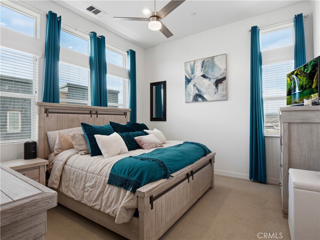 Welcome to this stunning 3-bedroom, 3-bath corner-unit townhome in the new FivePoint neighborhood. From the moment you walk inside, you’ll notice the feel of modern construction highlighted by soaring ceilings, contemporary finishes, and an abundance of windows that fill the home with natural light. The interior features a warm, natural design palette that pairs beautifully with picturesque views of Magic Mountain and the surrounding hillsides.