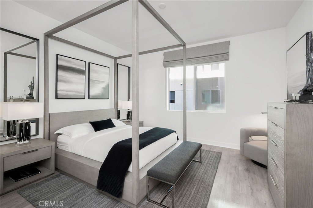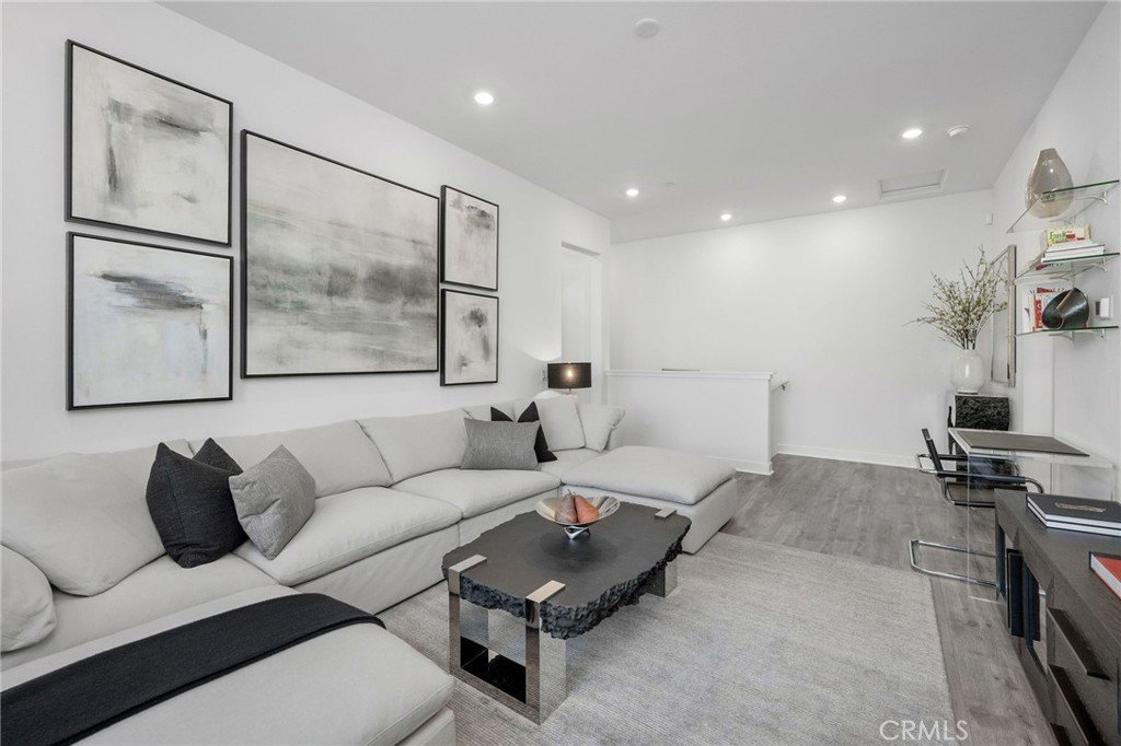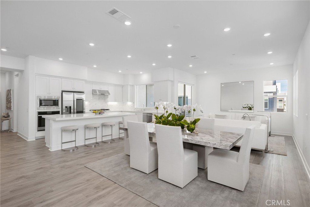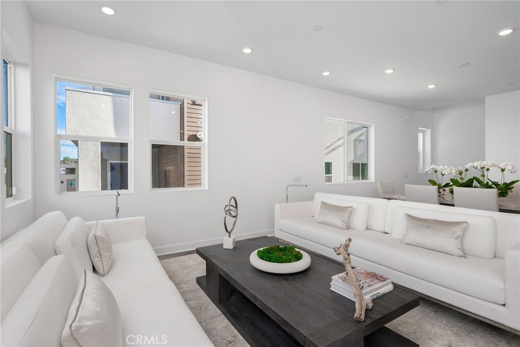 Welcome to refined modern living in the master-planned FivePoint community, where luxurious homes are complemented by resort-style amenities, parks, and scenic hiking and biking trails. This sophisticated, solar-powered tri-level home features an open floor plan, soaring 10-foot ceilings, wide-plank luxury vinyl flooring, marble bathroom vanities, and a light-filled kitchen featuring quartz countertops and a dramatic oversized island—designed for elevated everyday living and effortless entertaining. The third-floor flex space is exceptionally large—an impressive retreat that distinguishes this home. With a generous footprint, it accommodates a media room, executive office, game room, or expansive lounge within one adaptable space. Each generously sized bedroom is designed as a private sanctuary, with space for a sitting area and its own en-suite bathroom, offering comfort and privacy for family members, guests, or multi-generational living. Spa-inspired baths feature floor-to-ceiling tiled showers, polished tile flooring in all full bathrooms, and elegant marble flooring in the powder room. Thoughtful convenience includes an impressively large storage room, solar panels for energy efficiency and long-term savings, and an oversized two-car garage equipped with an electric car charging station and space for storage or a home gym. Although attached on one side, the residence enjoys a private street-level entrance and direct interior garage access—an elevated feature enhancing security and everyday ease. This home is designed for modern lifestyles with exceptional flexibility and enduring appeal overall.