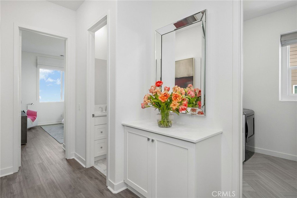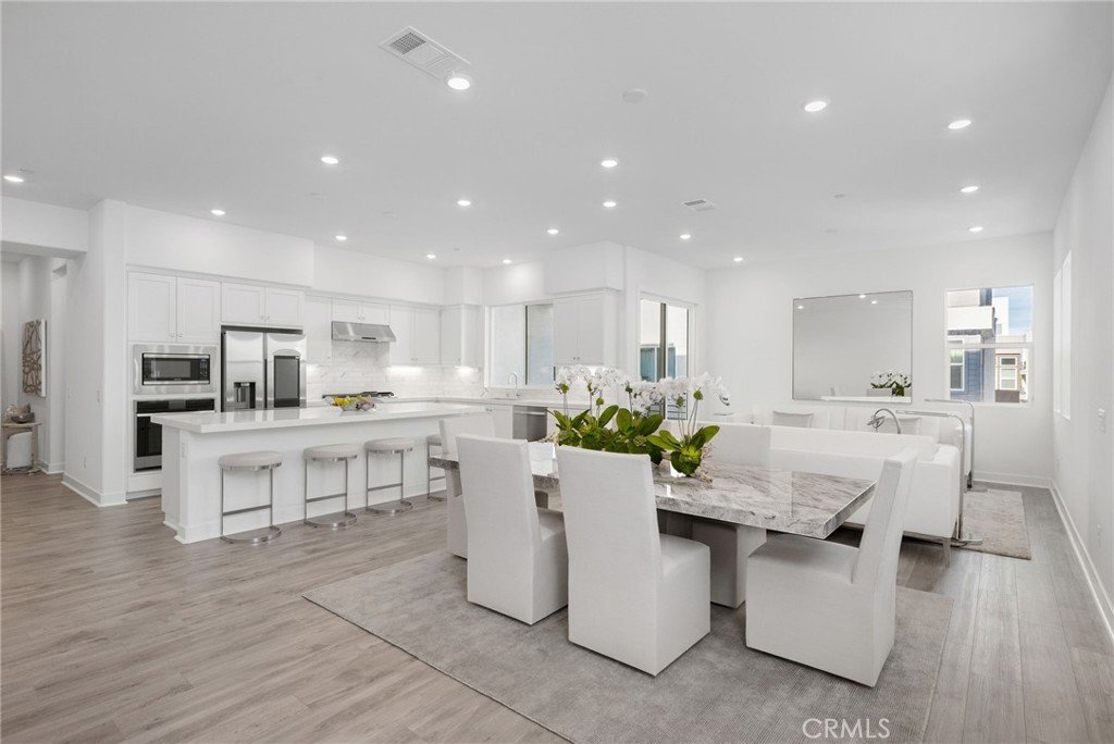 OFFERING A $20,000 CREDIT/INCENTIVE THAT CAN BE APPLIED TO PRICE REDUCTION, RATE BUY DOWN, CLOSING COSTS OR HOA FEES. Welcome to refined modern living in the master-planned FivePoint community, where luxurious homes are complemented by resort-style amenities, parks, and scenic hiking and biking trails. This sophisticated, solar-powered tri-level home features an open floor plan, soaring 10-foot ceilings, wide-plank luxury vinyl flooring, marble bathroom vanities, and a light-filled kitchen featuring quartz countertops and a dramatic oversized island—designed for elevated everyday living and effortless entertaining. The third-floor flex space is exceptionally large—an impressive retreat that distinguishes this home. With a generous footprint, it accommodates a media room, executive office, game room, or expansive lounge within one adaptable space. Each generously sized bedroom is designed as a private sanctuary, with space for a sitting area and its own en-suite bathroom, offering comfort and privacy for family members, guests, or multi-generational living. Spa-inspired baths feature floor-to-ceiling tiled showers, polished tile flooring in all full bathrooms, and elegant marble flooring in the powder room. Thoughtful convenience includes an impressively large storage room, solar panels for energy efficiency and long-term savings, and an oversized two-car garage equipped with an electric car charging station and space for storage or a home gym. Although attached on one side, the residence enjoys a private street-level entrance and direct interior garage access—an elevated feature enhancing security and everyday ease. This home is designed for modern lifestyles with exceptional flexibility and enduring appeal overall.