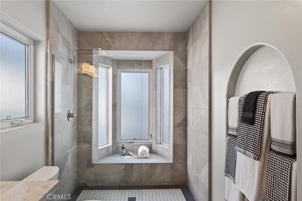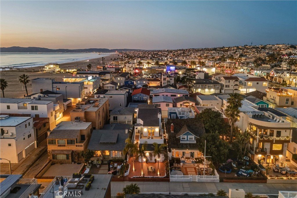 Welcome to this rare classic Hermosa Walkstreet home with an income unit, located just four houses from The Strand in the heart of Hermosa Beach. The remodeled front residence offers two bedrooms plus a third bedroom or office. A separate studio unit is located at the rear and is well suited for owner-users, extended family, or rental income. A spacious patio framed by mature landscaping and palm trees creates a welcoming outdoor setting for relaxing and entertaining. The main home is entered on the second level, where a generous ocean-view deck provides an ideal space for gatherings and sunset views. Inside, the residence has been updated with oak flooring, vaulted ceilings, and a fireplace serving the living and dining areas. French doors open to the ocean-view patio, allowing for easy indoor-outdoor living. The primary bedroom includes an en-suite remodeled bathroom. A second bedroom and an additional remodeled bathroom are also located on this level. The third level offers a spacious loft ideal for use as a third bedroom or flexible living area, complete with an attached half bath. Additional features include an extra bathroom off the garage and a bonus flex space or closet area. At the rear of the property is a separate studio unit with its own private entrance from 10th Court. This unit features vinyl flooring along with a remodeled kitchen and bathroom, making it well suited for guests, rental use, or extended family. The property features a private rear driveway accessed from 10th Court, complete with newly painted concrete and fresh landscaping. It offers parking for up to six vehicles, including a two-car garage and additional space for four cars in the driveway. Situated in the Sand Section near the beach, pier, and local dining, this Hermosa Beach duplex presents a rare opportunity to own a versatile coastal property in an exceptional location.