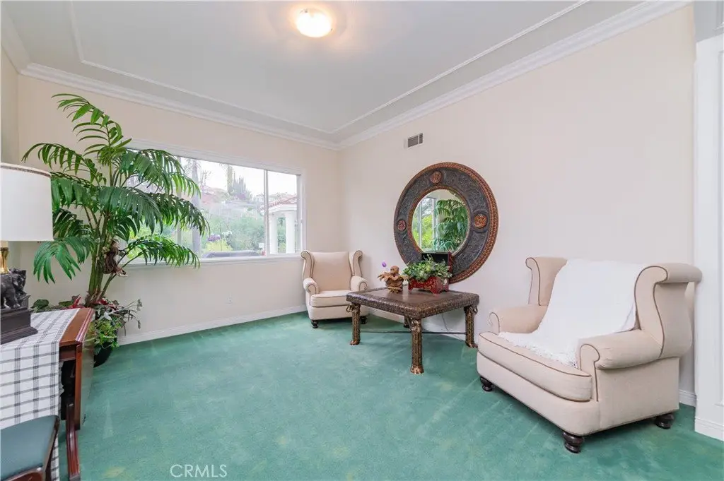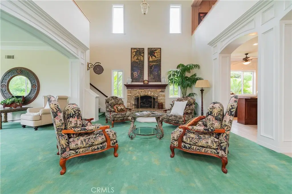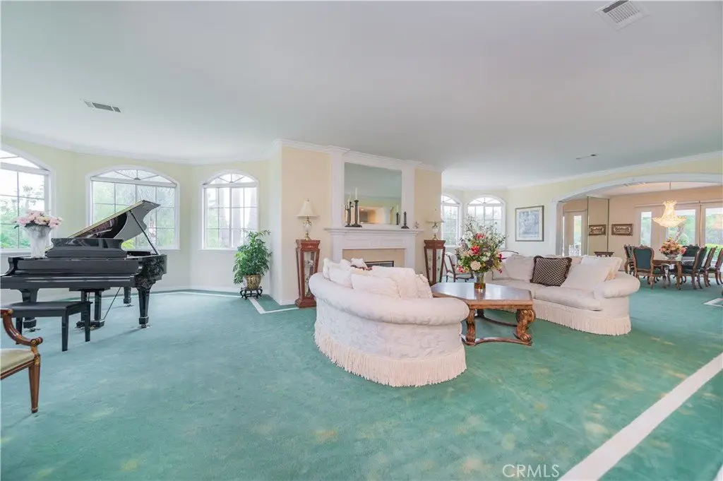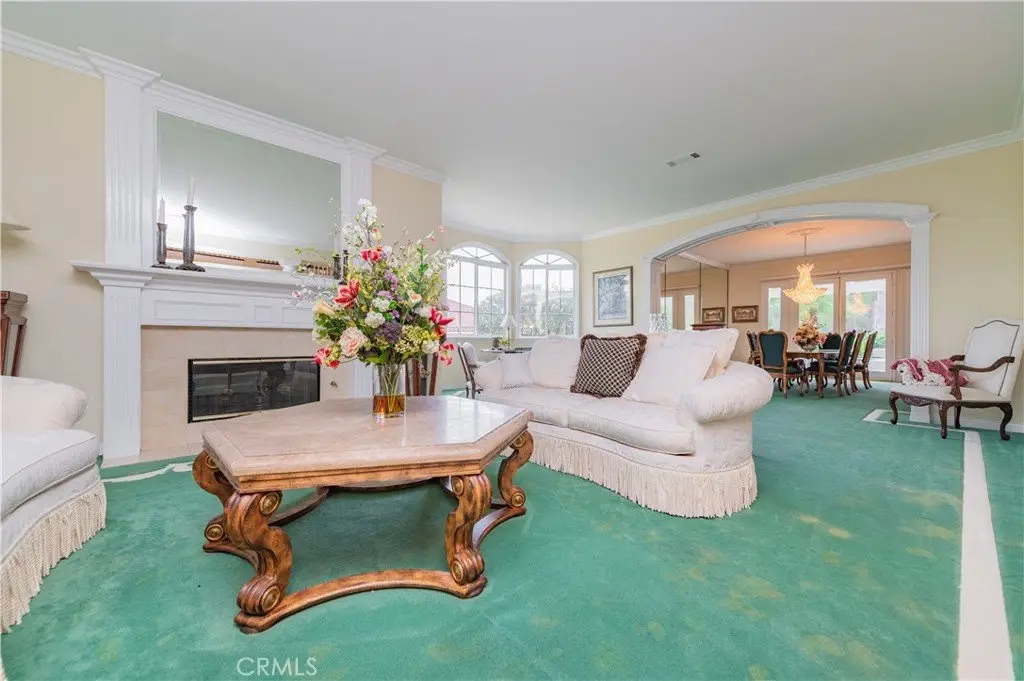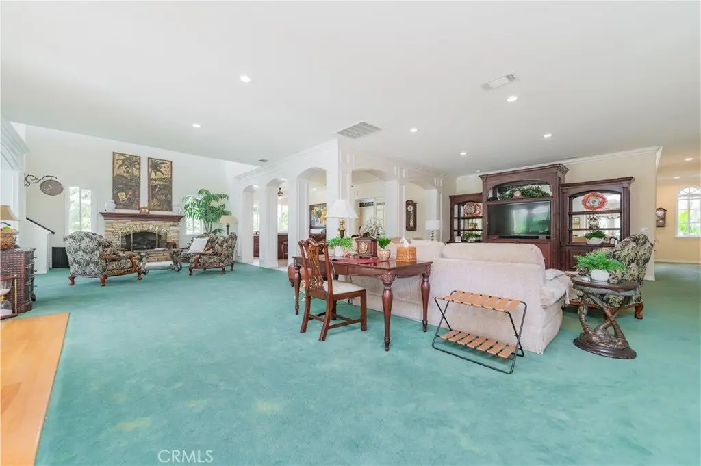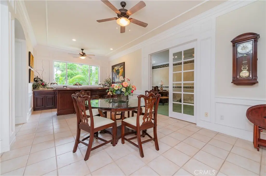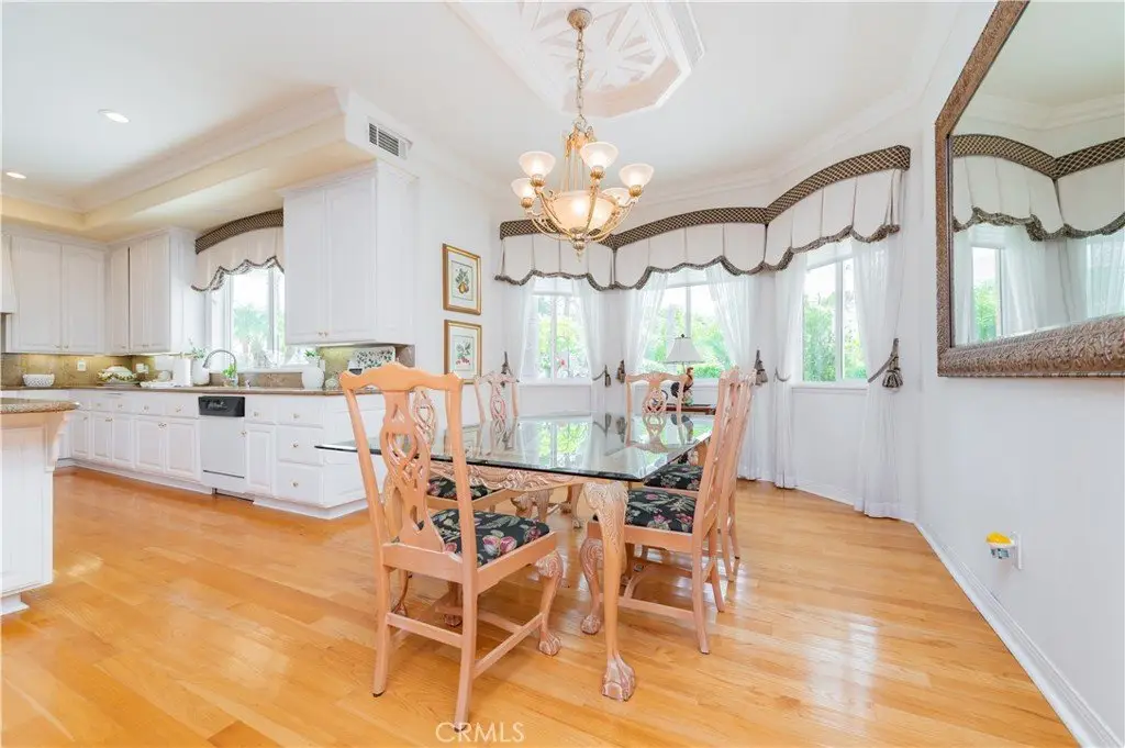 The formal living and dining rooms provide generous spaces for gatherings, while the family room is equipped with a custom-built-in entertainment center and is seamlessly connected to the large open kitchen, breakfast nook, a couple of cozy conversation sitting areas, and a gorgeous wet bar with a table for wine tasting.