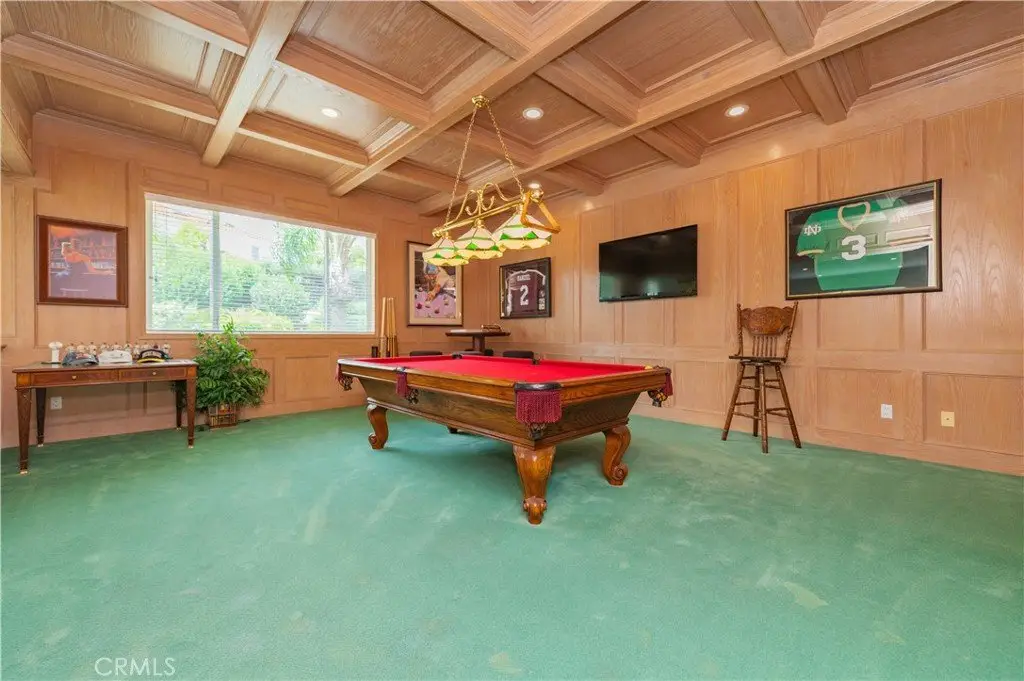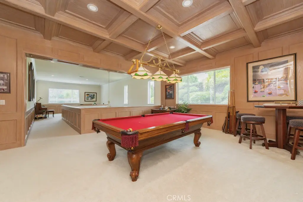 An expansive bonus area with paneled ceiling and walls is ideal for billiards, gaming tables, or displaying collectibles, offering endless opportunities for leisure and personalization. Custom window coverings throughout the home add a refined finishing touch.