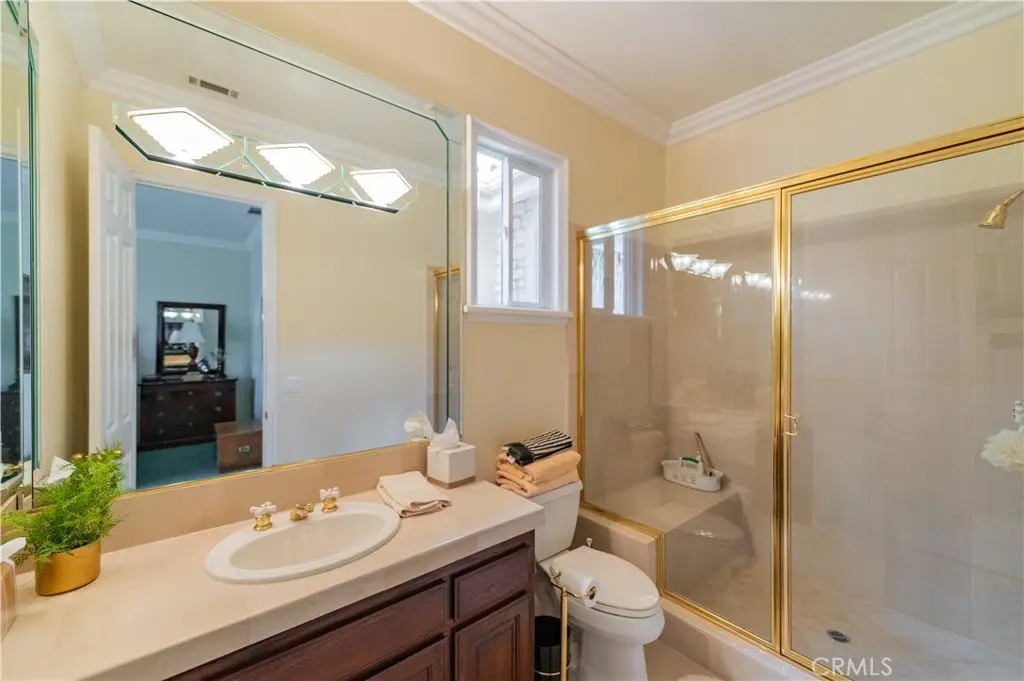 This exceptional estate, with original owner, located in the prestigious gated community of The Country, spans two parcels and boasts six luxurious bedroom suites, offering unparalleled comfort and privacy. An office with a full bath that can be used as the second downstairs bedroom suite, and an elegant, well-appointed powder room conveniently located between the formal living room and spacious family room, making it ideal for entertaining.