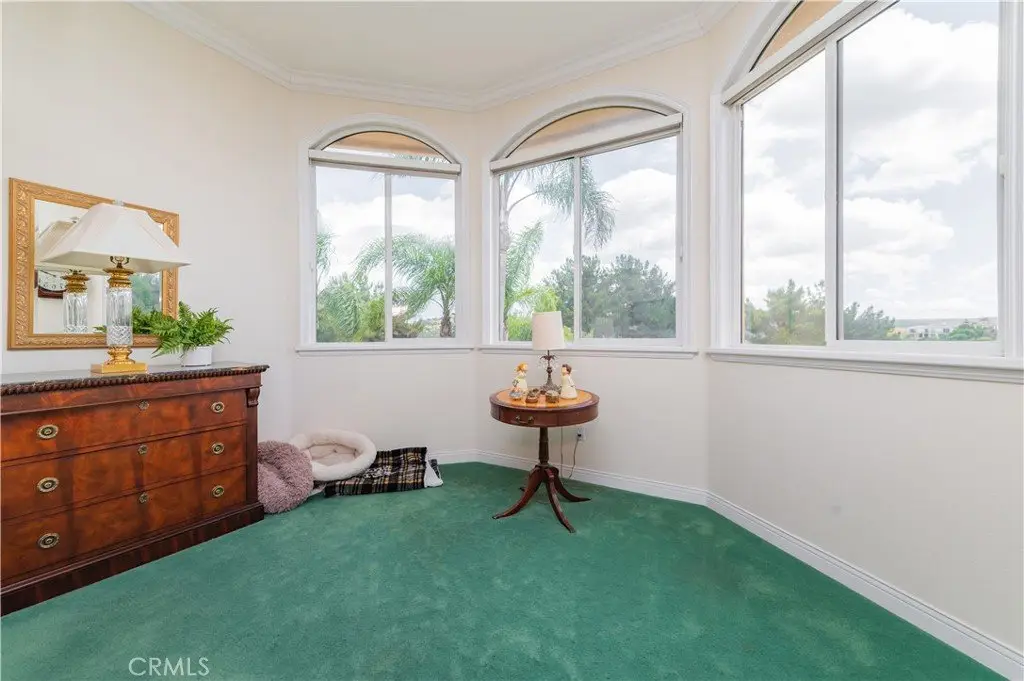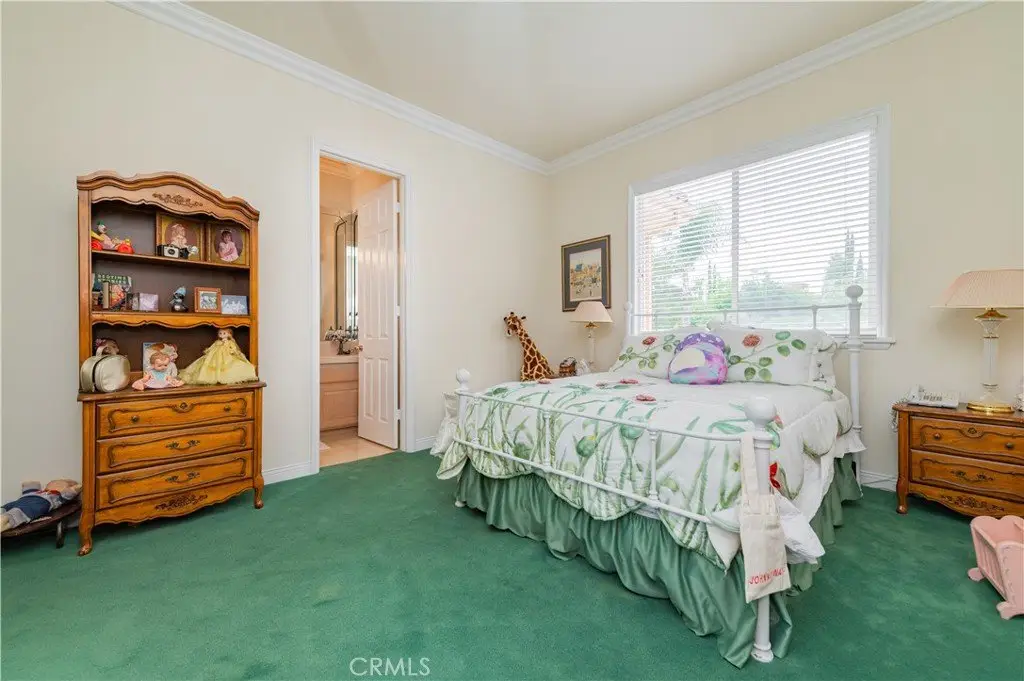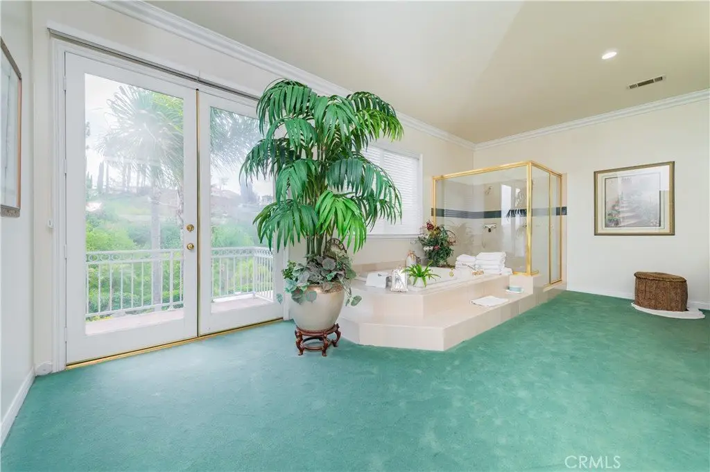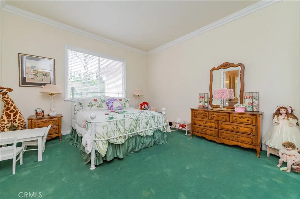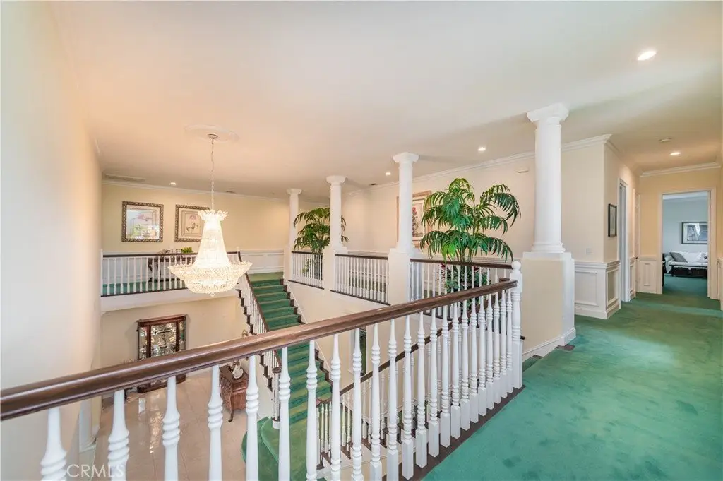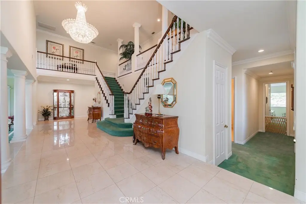 A dramatic two-story grand entry with a crystal chandelier welcomes you. Wide double staircases leading to different sections of the upper level set an impressive tone upon arrival.