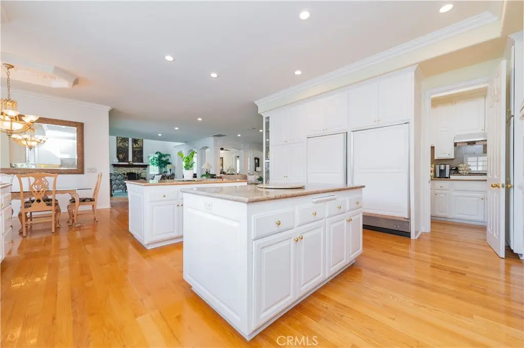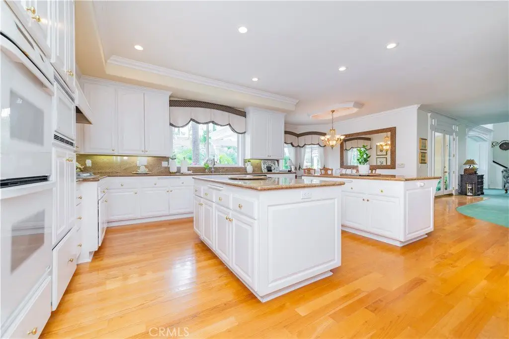 The gourmet kitchen is a chef’s dream, complete with dual center islands, custom cabinetry, and an adjoining wok kitchen for added culinary flexibility. Enjoy casual dining in the bright breakfast nook, perfectly situated off the open kitchen layout.