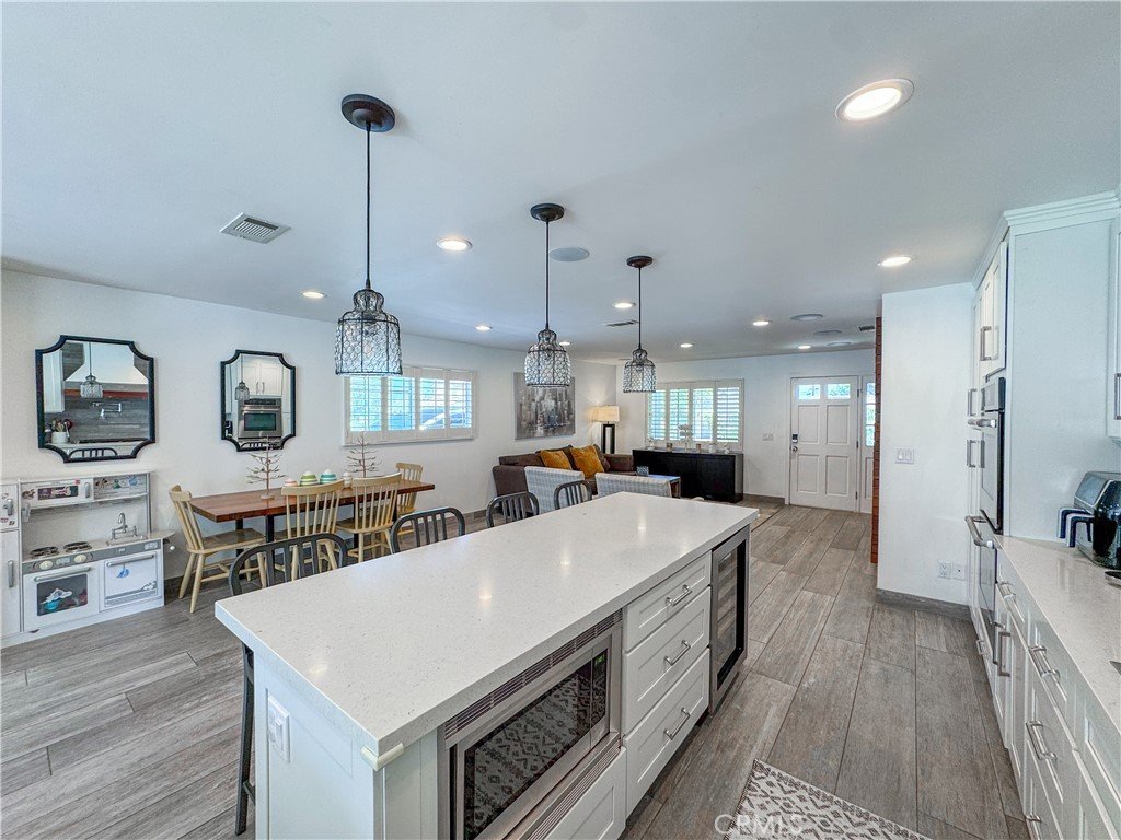 Beautifully remodeled in 2015, this cozy 4 bedroom/ 2 bath family home sits on a pretty, quiet, tree-lined street in Walteria. Its open layout is modern and inviting. This home boasts a flat, large enclosed backyard with tall palm trees and a brand new white vinyl fence which was recently installed in its perimeter. The stunning chef’s kitchen features a large center island, a double sink & wine refrigerator, a Jenn-Air six-burner range with pot filler, double ovens and so much more. The living room comes with recessed lighting, a built-in television and multiple speakers for great surround sound. This home also has an AC unit, a tankless water heater and a home security system. The laundry is conveniently located inside the house, near the bedrooms with enough space for side by side washer/dryer. Adjacent to Palos Verdes, it is conveniently located near schools, parks, the south coast botanic gardens, shopping malls, supermarkets, hospitals, south bay beaches and freeways.