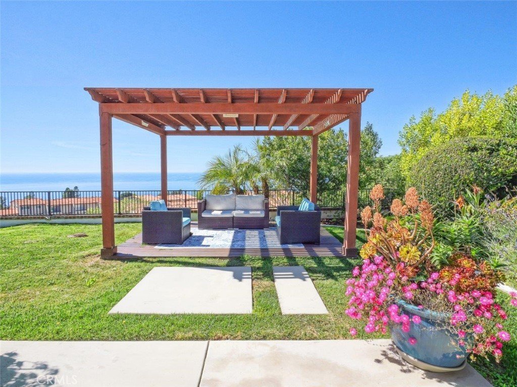 View! View!! View!!! Perched in the heart of Palos Verdes, this beautifully remodeled home showcases unobstructed, panoramic ocean view stretching from Catalina Island to Malibu, including a view of the iconic Queen’s Necklace. Enjoy breathtaking sunsets and twinkling coastline lights from both the interior and the private backyard, views that are truly rare and captivating. Meticulously renovated in 2021 and over the years, this turn-key residence boasts a new kitchen, 3 bathrooms, hardwood French Oak floor, double pane windows/sliding doors, modern barn doors, interior paint, lightings, a reimagined backyard and much more. These improvements spare the next owner the time and effort of remodeling, allowing immediate enjoyment of the home. A landscaped front lawn and inviting walkway lead to a high-ceiling foyer, opening to a living room with a cozy fireplace and an intentionally raised cathedral ceiling that enhances the sense of openness. The living room flows seamlessly into the dining room that connects to the remodeled kitchen, creating an ideal layout for both daily living and entertaining. The kitchen is thoughtfully designed with quartz countertops, custom cabinetry, and a large dining counter positioned to take in the ocean view. Nearby is a spacious family room, perfect for gatherings, relaxation, and enjoying the view, complete with a second fireplace and direct access to the backyard. A former fourth bedroom was incorporated to expand the family room and can easily be converted back into a bedroom or home office. A full bathroom on this level adds flexibility and convenience. ON THE UPPER LEVEL, the primary suite showcases large garden windows that capture the vista, a wall of closet, and a beautifully remodeled bathroom. Two additional bedrooms, one of which also enjoys an ocean view, share a hallway bath. All bathrooms are finished with quartz countertops, shaker cabinetry, and rain shower heads. Designed for effortless outdoor living, the private backyard offers an open patio, gazebo with seating area, fire pit, and jacuzzi, all set against the stunning ocean backdrop. Even the garage has been upgraded with an EV charger, built-in storage cabinets, wall organizers, and an epoxy floor. Ideally located near award-winning Palos Verdes schools, shops & restaurants, this move-in-ready home delivers panoramic views, modern comfort, and exceptional coastal setting. A rare opportunity not to be missed!