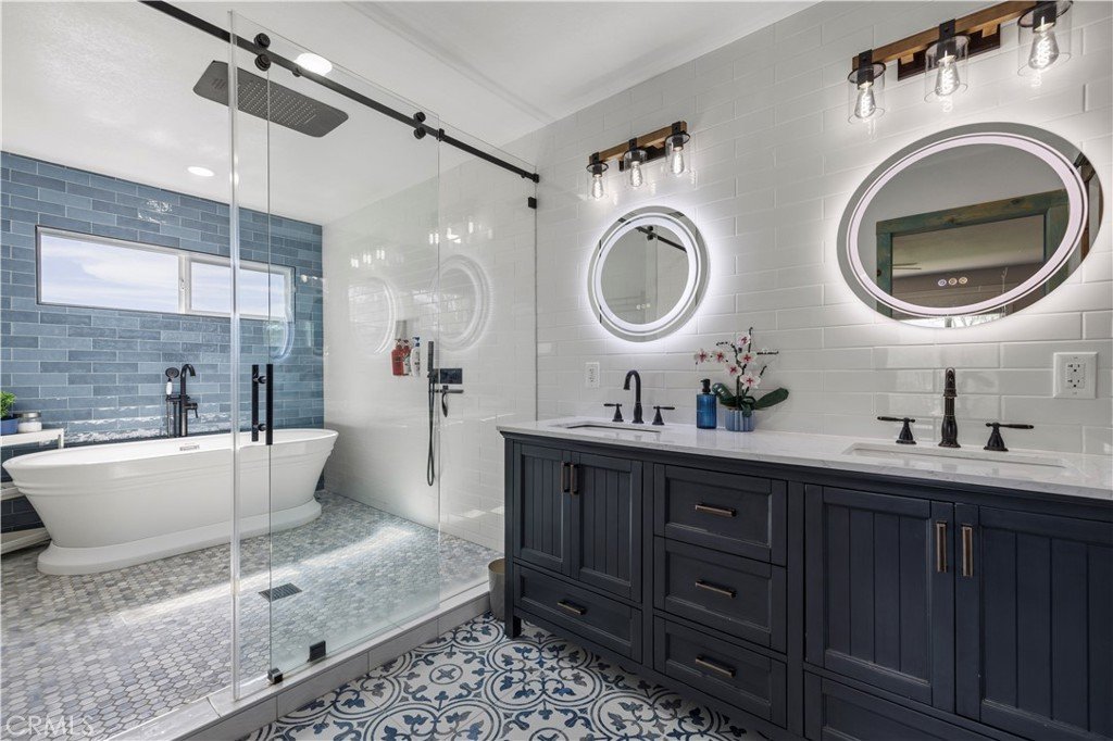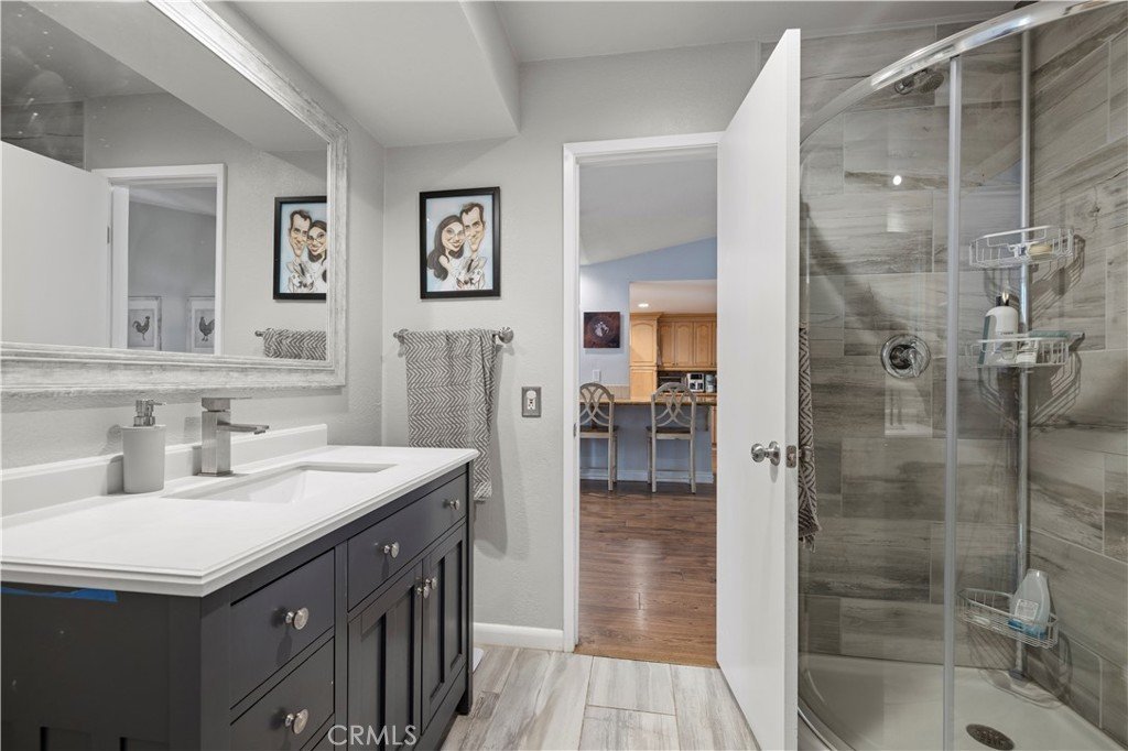 Wonderful 5 bed 3 bath 2901 sq ft home perched to capture sweeping panoramic views of the neighborhood, surrounding mountains, in beautiful Canyon Country, this truly customized residence offers space, flexibility, and breathtaking scenery in one incredible package. A substantial room addition completed in 2004 transforming this home into an expansive and versatile layout designed for comfortable living and effortless entertaining. With two private primary suites, including one conveniently located downstairs, this floorplan is ideal for multi-generational living or extended guest stays. The main level features four bedrooms and two full bathrooms, along with a spacious living room, formal dining room, and inviting family room. The beautifully remodeled downstairs bathrooms, showcase modern finishes and thoughtful design. A stunning custom fireplace in the living room creates a warm focal point and gathering space. At the heart of the home is a generously sized kitchen designed as the true hub of daily life, complete with granite countertops, a walk-in pantry, and an oversized breakfast bar perfect for casual dining and conversation. The entire upstairs is dedicated to an impressive primary suite retreat. This private sanctuary has been remodeled to include a one-of-a-kind, state-of-the-art bathroom and an extraordinary walk-in closet designed for both luxury and functionality. The spa-inspired bathroom features dual sink areas, a jetted soaking tub, and a separate shower, all thoughtfully upgraded with high-end finishes and custom details that create a true resort-like experience. Additional highlights include dual-pane windows for energy efficiency, and owned solar. With its panoramic views, expansive layout, and exceptional upgrades, including a truly standout upstairs primary retreat, this customized Canyon Country home offers a rare opportunity to enjoy luxury, privacy, and breathtaking scenery all in one remarkable residence
