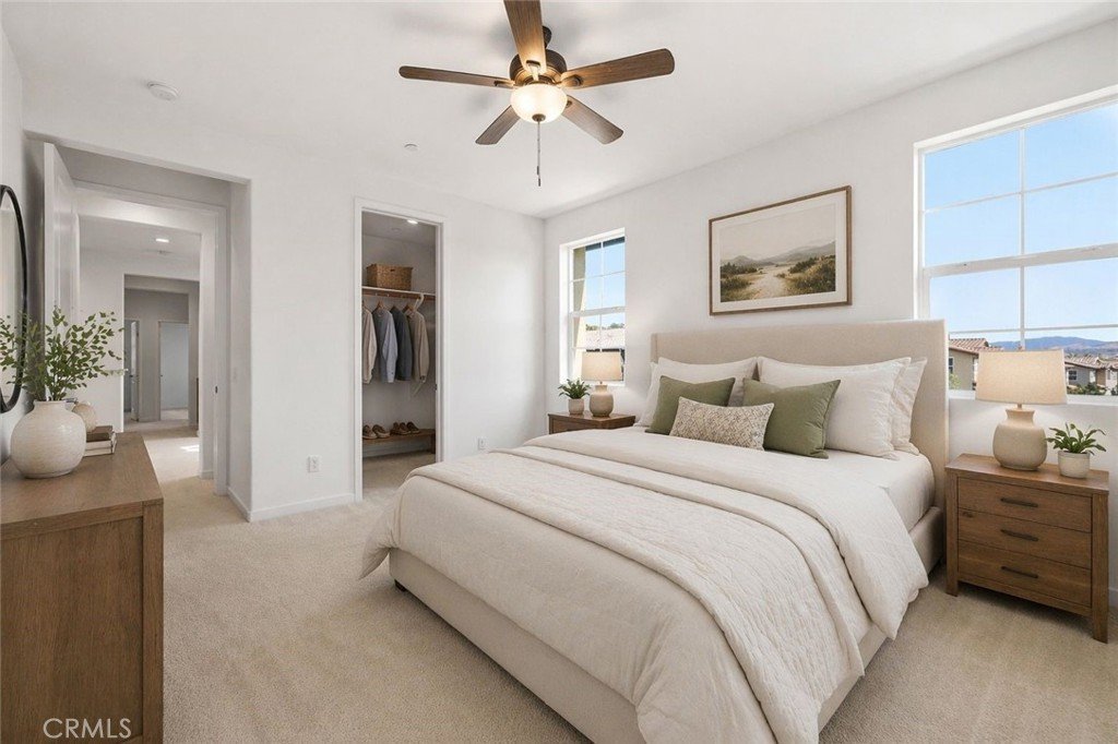 STUNNING VALENCIA HOME!! 3 bedroom, 2.5 bathroom plus loft end unit townhome with neighbors only on one side, located in the desirable West Creek community of Valencia. This highly sought-after floorplan features an open concept design with abundant natural light throughout. The spacious great room provide an ideal setting for entertaining and flows seamlessly into the modern kitchen, featuring a large center island, granite countertops, stylish backsplash, mocha cabinetry, stainless steel appliances all included. A builder upgrade extended the kitchen with additional glass front cabinetry providing enhanced storage and an elevated design touch. The home is thoughtfully upgraded with smart home technology, a tankless water heater, recessed lighting, a whole house fan, and ceiling fan/light fixtures in all bedrooms for enhanced comfort and energy efficiency. Additional features include a 2-car attached garage with direct access, a convenient downstairs powder room, and indoor-outdoor living with access to a private yard. Upstairs, the primary suite includes an oversized walk-in closet and a spacious ensuite bathroom with dual sink quartz countertops. A versatile loft area provides flexibility for use as an office, gym, or secondary living space. Two additional bedrooms share a dual-sink hallway bathroom, and the upstairs laundry room includes washer and dryer along with extra storage. The property is ideally situated within the community and includes access to HOA amenities such as pools, recreation facilities, parks, basketball courts, and paseo trails. Conveniently located near West Creek Academy, Rio Norte Junior High School, and Valencia High School, as well as shopping, dining, and convenient freeway access. Don't miss out - schedule your visit today!