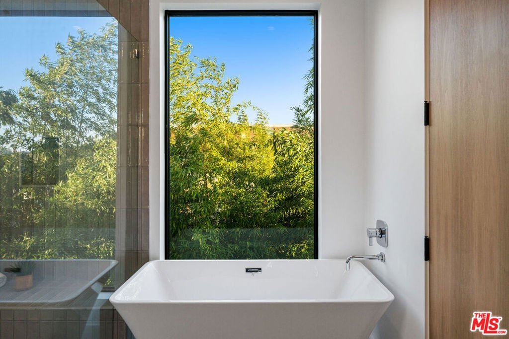 Just moments from Ivanhoe Elementary, this modern Silver Lake home blends light, views, and thoughtful design into a setting that feels both calm and elevated. The main living space opens effortlessly, with a generous great room adorned with a bamboo backdrop, flowing seamlessly into a warm, understated kitchen with walnut cabinetry, a large island, and Bertazzoni appliances perfect for quiet mornings or entertaining in the evening. Each of the three bedrooms is paired with a private ensuite, creating a collection of serene retreats throughout the home. The primary suite impresses with a generous walk-in closet and a spa-inspired bath, featuring a freestanding soaking tub, dual vanities, and elegantly understated finishes. Secondary bedrooms offer equal attention to detail, with spacious layouts and thoughtfully designed baths, ensuring comfort and privacy for family or guests alike. Upstairs, the rooftop deck becomes a natural extension of the home, offering wide-open views that stretch from the Silver Lake Reservoir to Downtown and the Griffith Observatory, an ideal backdrop for sunset evenings. Set within one of Silver Lake's most vibrant pockets, with easy access to local shops, restaurants, scenic trails, and the surrounding hillsides.