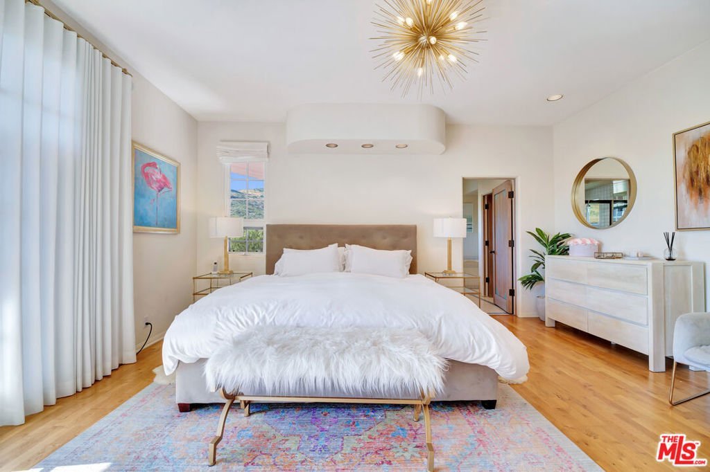Set within the coveted El Nido enclave of Corral Canyon, this beautifully distinctive retreat spans a rare double lot with sweeping ocean views toward Point Dume offering an exceptional blend of privacy, scale, and accessibility that is increasingly hard to find in Malibu. A sense of arrival unfolds as light pours into the open-concept living spaces, where French doors dissolve the boundary between indoors and out, leading to a wraparound deck with tranquil ocean vistas. Designed for both intimate living and effortless entertaining, the home balances warmth and sophistication throughout. The kitchen, thoughtfully updated with custom cabinetry, farmhouse sink, and quartz countertops, anchors the space while flowing seamlessly into the dining and family areas. The lower level reveals a highly versatile layout tailored to modern living. The primary suite is a true sanctuary, defined by soaring beamed ceilings, a private deck, walk-in closet and a spa-like bath designed for relaxation. An additional 4 rooms currently configured as bedrooms offer flexibility for guest suites, office or creative space, adapting effortlessly to a variety of lifestyles. The grounds are truly special lushly landscaped with winding garden paths, ambient evening lighting, and an array of mature fruit trees including lemon, lime, fig, orange, and blood orange. Multiple outdoor areas invite relaxation, play, and entertaining, while a private spa creates the perfect setting to unwind under the stars. A separate ADU with private entrance and kitchenette presents an exceptional opportunity for guest accommodations, income potential, or multigenerational living adding a valuable layer of flexibility and investment appeal. Additional features include a two-car garage equipped with Tesla and Rivian charging, a dedicated gym with French doors, solar power, cold plunge, a Generac generator, newer HVAC and water heater, and generous storage throughout including an expansive storage area on lower level. A rare offering that combines space, character, and lifestyle this is Malibu canyon living at its most compelling.