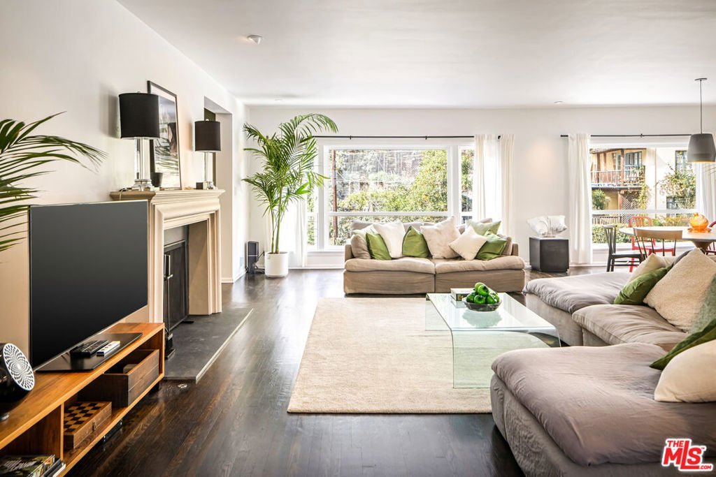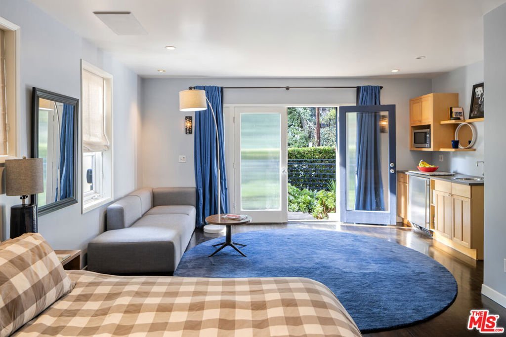 This gated Traditional home with mid-century modern influences and PRIVATE GUEST SUITE sit on a large, wooded lot in upper Beachwood Canyon. Formerly celebrity-owned and tucked back from the street, this home's expansive rear yard is an outdoor sanctuary bringing the tranquility of nature to everyday living. green canyon views can be seen from the oversized windows creating an airiness throughout the living space, anchored by a renovated kitchen which seamlessly joins both interior living and the outdoors. The kitchen is outfitted with built-in, luxury appliances, a large island, and plentiful countertop prep space. Whether you prefer entertaining or quiet fireside moments, this home offers the space for your household to sprawl on the 4 bedroom, 3 bath main level inclusive of an oversized, primary suite with custom Walnut built-in's and dedicated laundry/utility room. Rear French doors open to your own secluded garden designed for entertaining. Winding paths of the curated grounds showcase its succulent gardens, professionally landscaped terraces, several lounging areas, banana and Meyer lemon trees, and private hilltop pergola illuminated by a masterfully designed light installation. Out of town guests can enjoy the privacy of a PRIVATE GUEST SUITE on the lower level with its own kitchenette, bathroom, bedroom/office and private garden. The two-car garage features built-in cabinets & utility sink. Close to hiking trails, Beachwood market, city night life, and major studios. Experience the magic of this private sanctuary in iconic Beachwood Canyon.