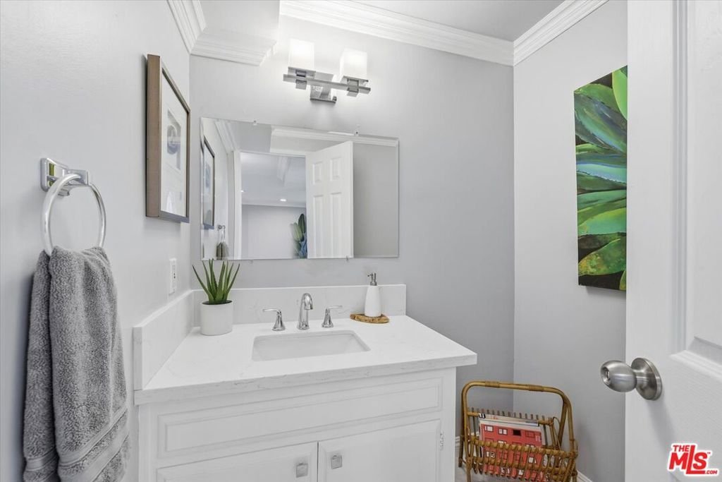 This beautifully upgraded home is right in the heart of the Mar Vista Elementary school district and situated on a quiet tree-lined cul-de-sac. A bright, spacious kitchen with breakfast area and adjacent dining room. The immaculate kitchen beckons gourmet cooking and entertaining complemented by quartz counters and elegantly tiled backsplash and sleek appliances. Two impeccably maintained bedrooms upstairs share a polished, modern bathroom and the master suite boasts a walk-in closet and gorgeous bathroom. French doors open to the private, leafy backyard which is a private paradise for al fresco dining and relaxation next to the sparkling pool. A large garage offers storage, parking, and ADU potential. The home offers a wonderful living experience in a tranquil residential setting and is walking distance from great schools, parks, shopping, dining.