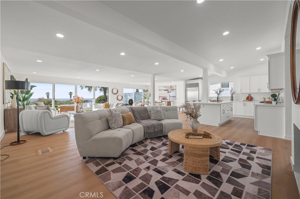 Discover an extraordinarily rare opportunity in prestigious Rancho Palos Verdes: a single-story, ocean-view estate that has been fully remodeled! This exceptional 2,510 square foot residence features an open space including the 558 square foot addition (permits waiting for final approval) on main house, four bedrooms, four bathrooms, and breathtaking Pacific Ocean and Catalina view from the kitchen, living room, and master suite. Through the gated private courtyard, entering the main door, you are welcomed by the elegant foyer. Then the spacious open floor seamlessly connects kitchen, living, and dining spaces into one room where ocean vistas provide your constant backdrop. The master suite with walk in closet offers a private ocean-view retreat. Two other suites provide exceptional privacy for family and guests. Stepping out of the living space, the new patio deck and turf in backyard offer the relaxation and enjoyable costal life. Every major component is brand new: roof, two AC units, kitchen with new island and new appliances, four bathrooms, double-pane windows and doors, beautiful floor throughout, recess lights, electricity sub panel, and fresh interior and exterior paint creating a crisp, modern canvas. Single-story living eliminates stairs entirely. The house is near to the Trade Joe's supermarket, stores, restaurants, parks, hiking trails, golf courses, Terranea resort and highly rated schools! Conveniently located in one of Southern California's most prestigious communities, this turnkey home requires no repairs or updates—simply move in and start enjoying coastal living immediately. This is more than a house; it's an investment in your future and a rare opportunity to own the complete package discerning buyers dream about but rarely find.