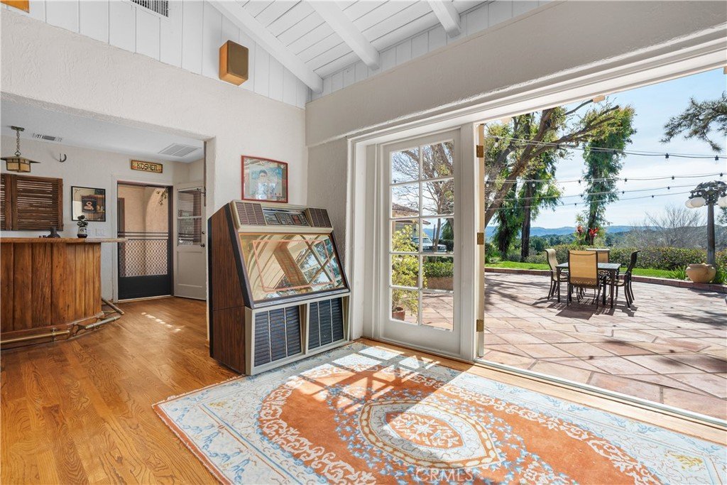 Complementing the residence is a 660 sq ft detached guest house, currently arranged as a game room overlooking the outdoor entertaining areas. Inside, a rustic bar and private bathroom add convenience, making the space well suited for hosting guests, a studio, or future guest quarters.